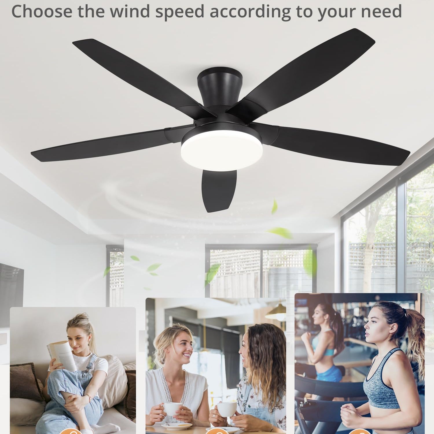 - Noise-free experience: When the low profile ceiling fan is running, the volume is as low as 35db, which is equivalent to the sound of a person talking softly/the ticking of a mechanical alarm clock, suitable for families with elderly and children.No more sleep disruptions or distracting noises, just peaceful comfort