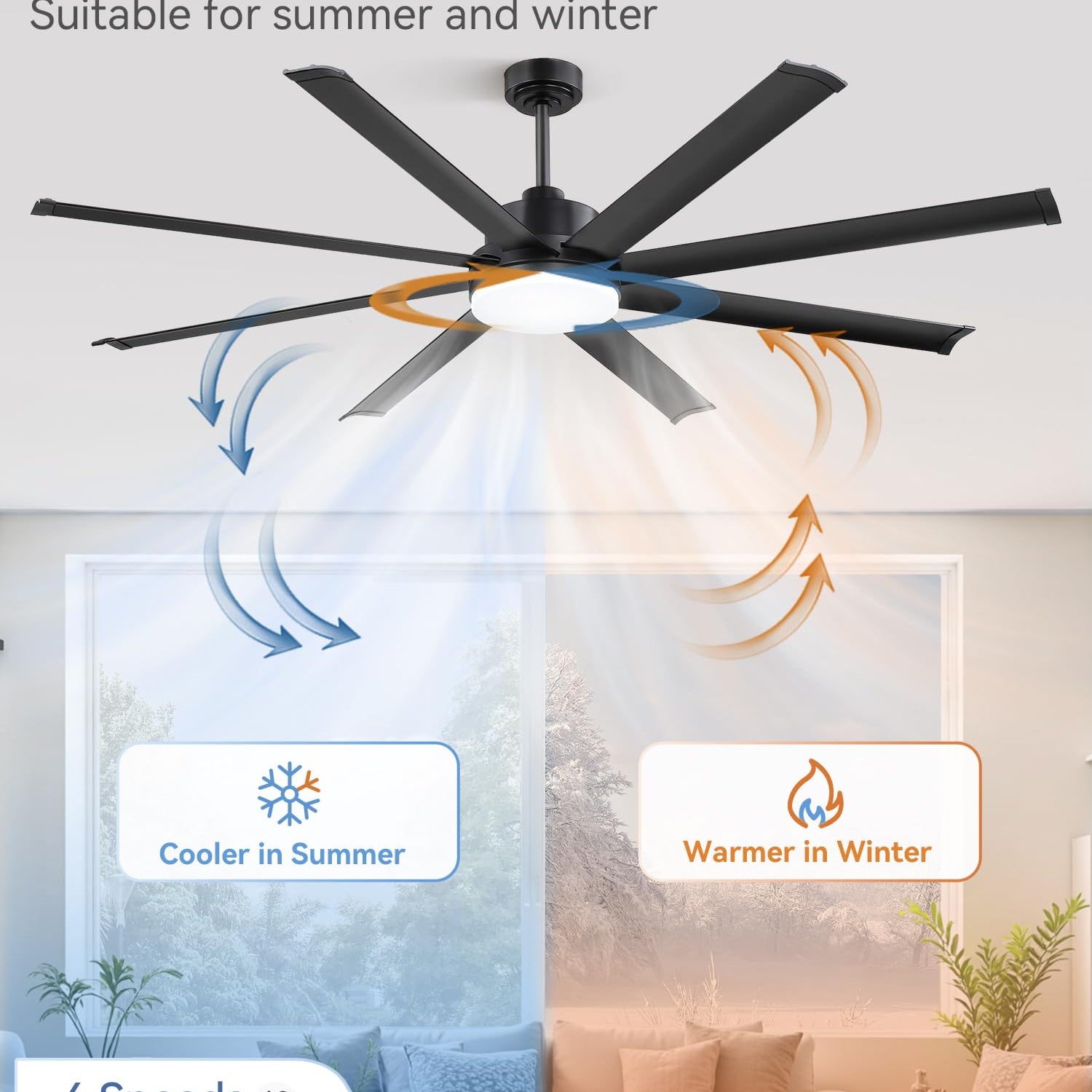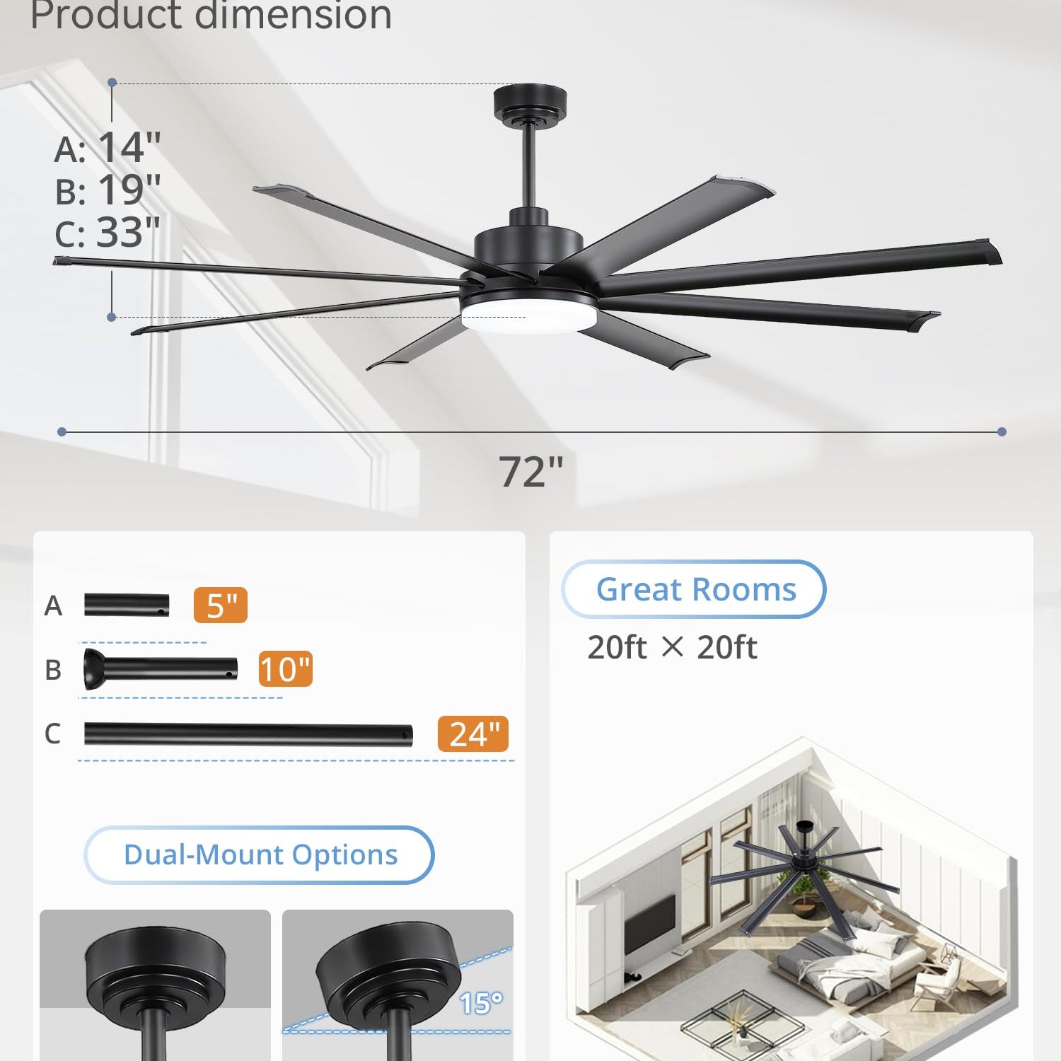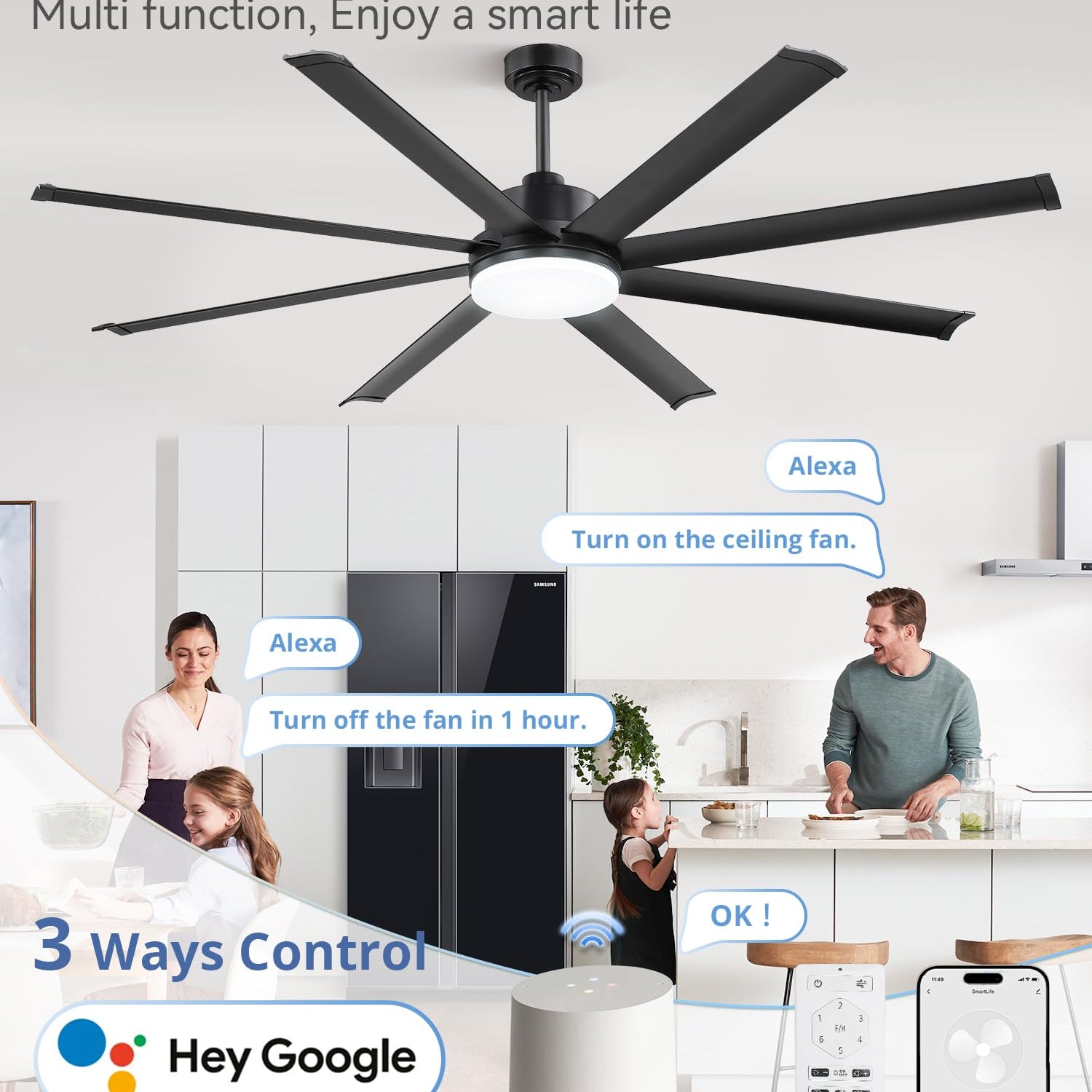- Smart Voice/App/Remote Control: Our 72 inch ceiling fan offers 3 control options- remote, app, voice (works with Alexa/Google Home). The fan and light can be controlled separately. 6 speeds, LED Dimmable, timer setting, customize mode as needed