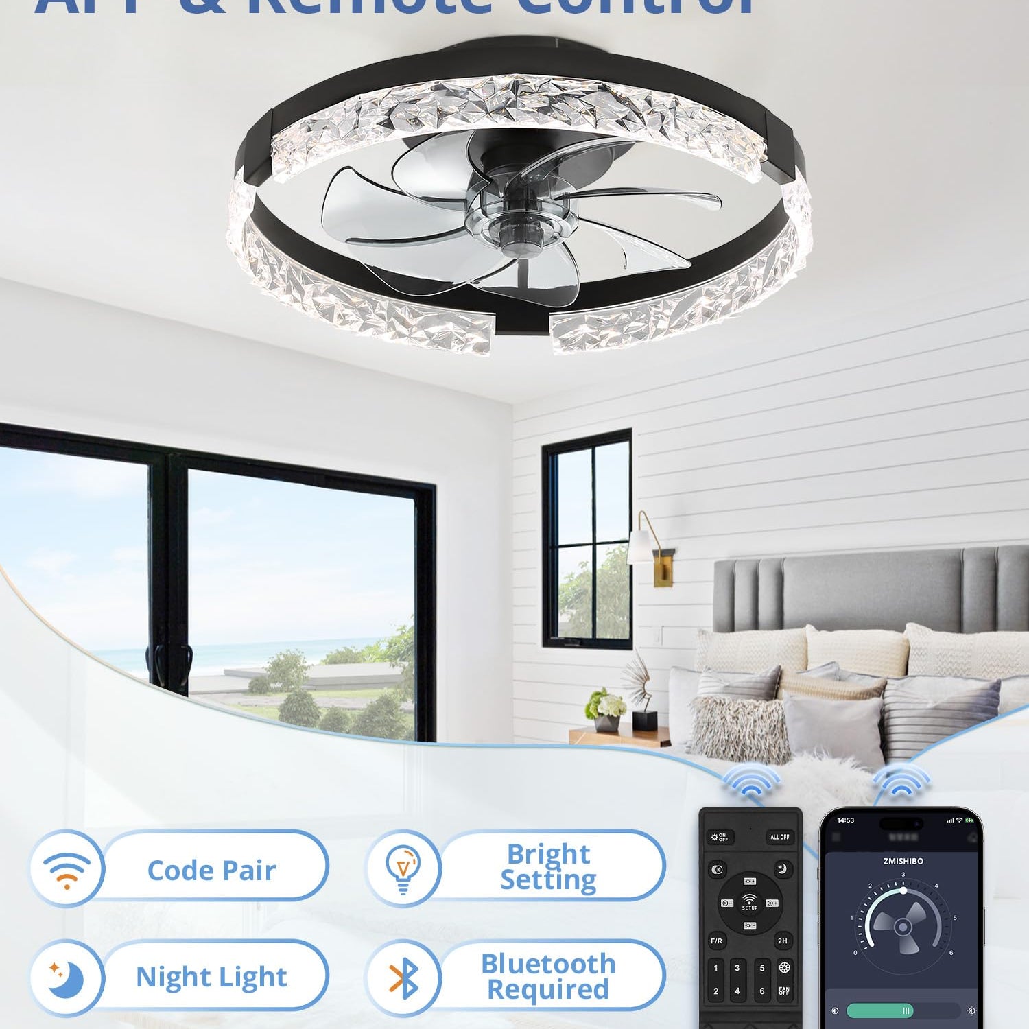 ZMISHIBO Ceiling Fans with Lights and Remote, 18 Inch Flush Mount Fan Light, 6 Speeds, 3CCT, Dimmable, Low Profile Ceiling Fan, Modern Ceiling Fan with Light for Bedroom and Living Room, Black