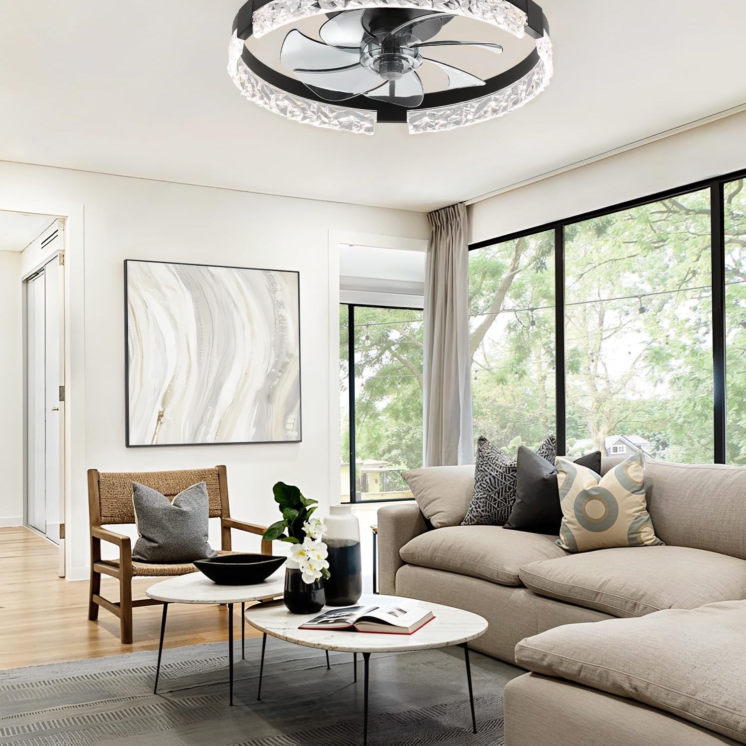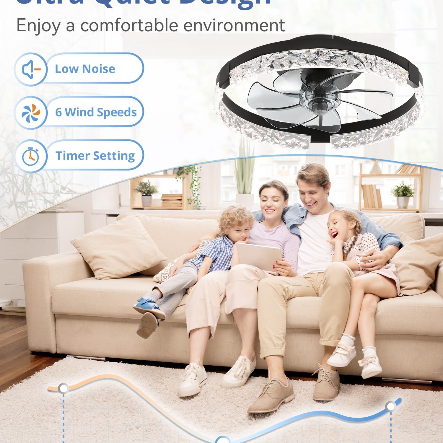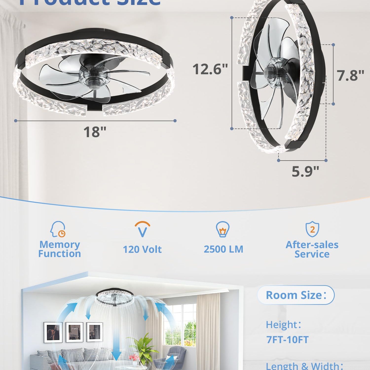 - 18 Inch Modern Ceiling Fans: Our low profile ceiling fan with light designed with a fashionable appearance, 7 fan blades, 6-speed, 2500 lumens and two convenient control modes:APP control and remote control