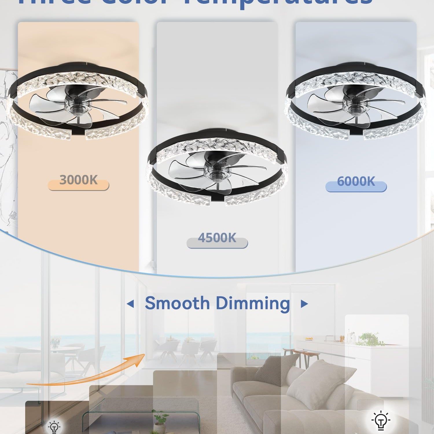 - Dimmable Lighting & Ceiling Fans: Support dimming and 3 color temperature options (3000K/4500K/6000K) to meet your needs in different occasions. 10%-100% stepless dimming function, so that the light can be adjusted at will
