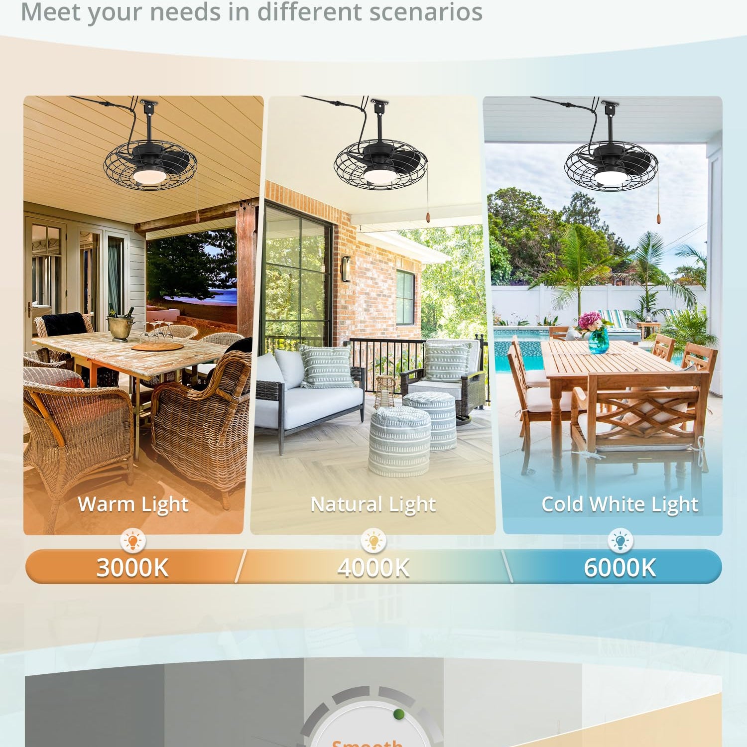 - Remote & APP Control:Our gazebo ceiling fan offer three color temperatures with stepless dimming, 2H timer and six wind speed options. All these features can be easily controlled via remote or app, providing you with a comfortable and enjoyable experience