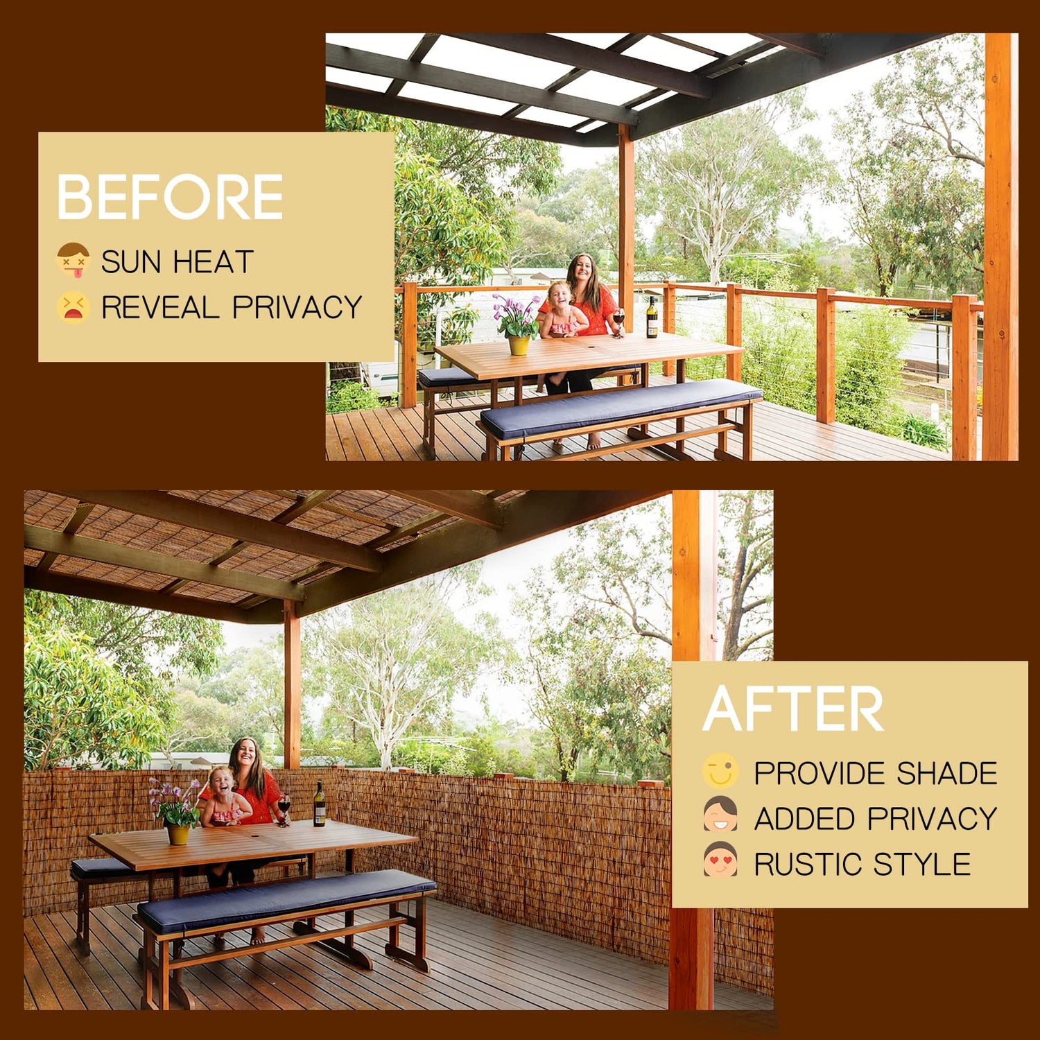 - 【MORE THAN A FENCING】- From hiding flawed wall, old fences to improving privacy in backyard/balcony to protecting pets from jumping out of balcony, these reed fence is also a perfect decor to ornate swimming pool.