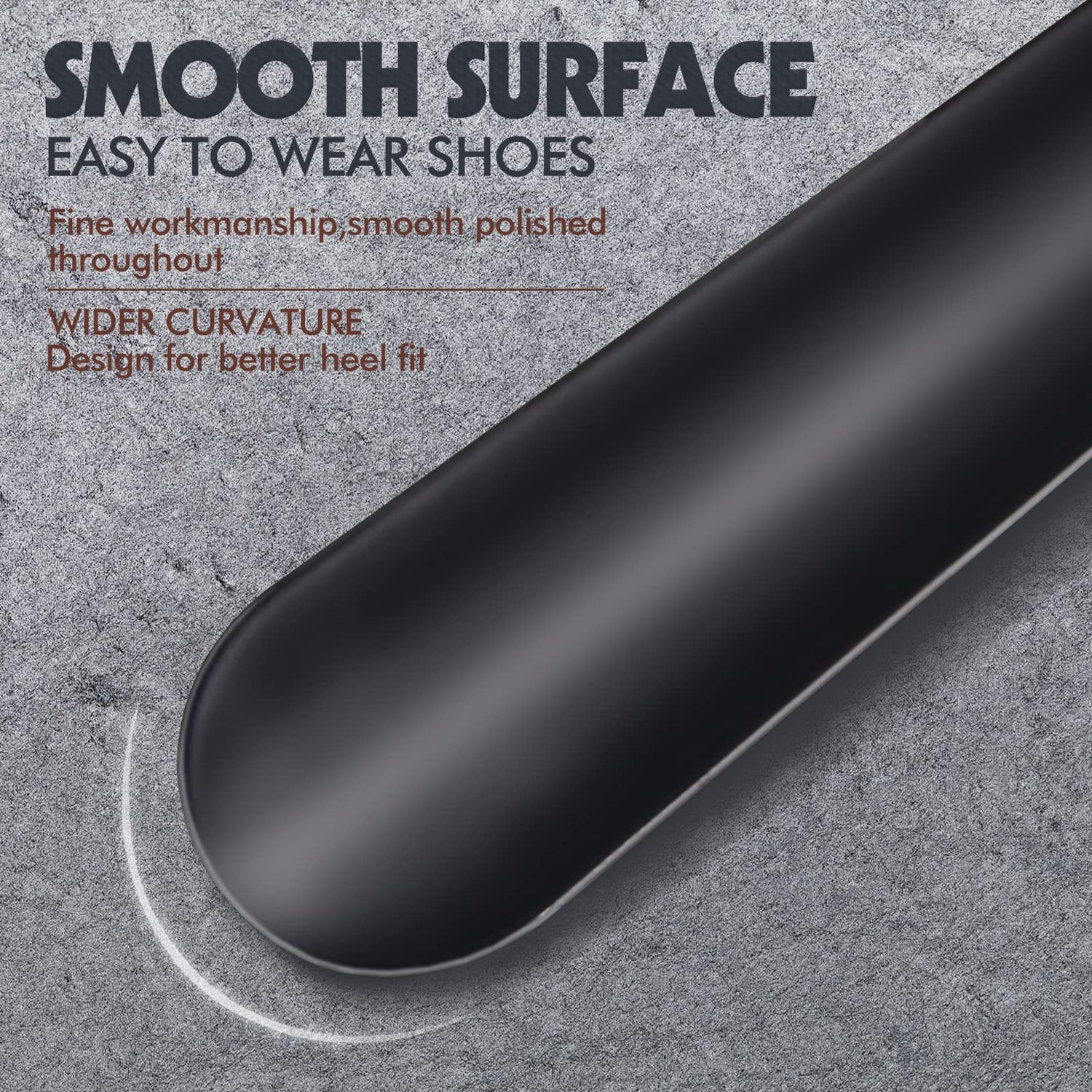 - Metal Shoe horn:Our black shoehorn(also known as a Shoe Spoon or Wear Shoe Helper) are forged from high-quality metal, which is sturdier than plastic shoehorns, wear-resistant, and not easy to bend