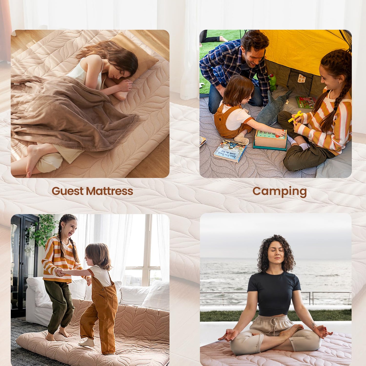 - Versatile and Portable: Whether you use it as a Mattress Topper, Bedroom Futon, Living Room Futon, Tatami Mat, Floor Mattresses for sleeping, Yoga Mat, Guest Floor Sleeping Mat, Japanese Futon Bed Mat or Kids Play Mat, this mattress has got you covered. Additionally, it is highly Portable, making it perfect for RV, road trips or outdoor camping activities