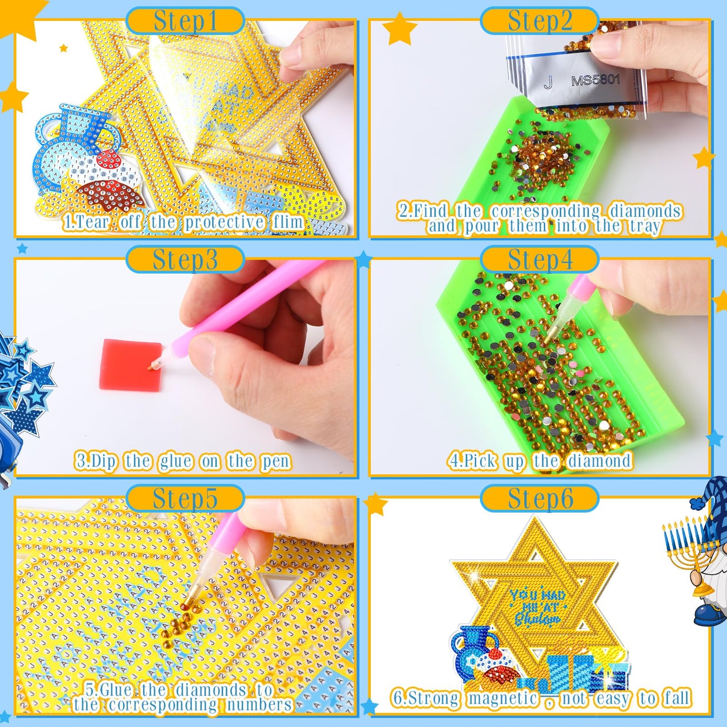 - Versatile Designs for Gift and Personal Use: our DIY diamond art kit offers 6 varied Hanukkah patterns designs; It serves as a gift, whether adults or young ones; Bring around a wave of DIY fun or gift them your finished creation; It's a nice way to have a piece of wall hanging kit in your own home