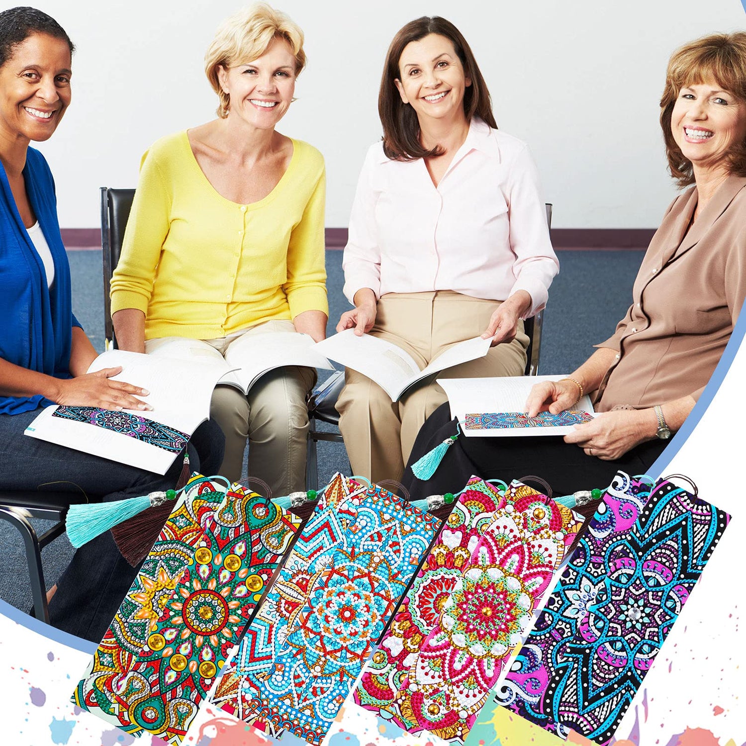 Zonon 8 Pcs Diamond Painting Bookmarks 5D Floral Art Painting Bookmarks PU Leather DIY Mandala Style Study Supplies with Tassels for Adults Gift Crafts