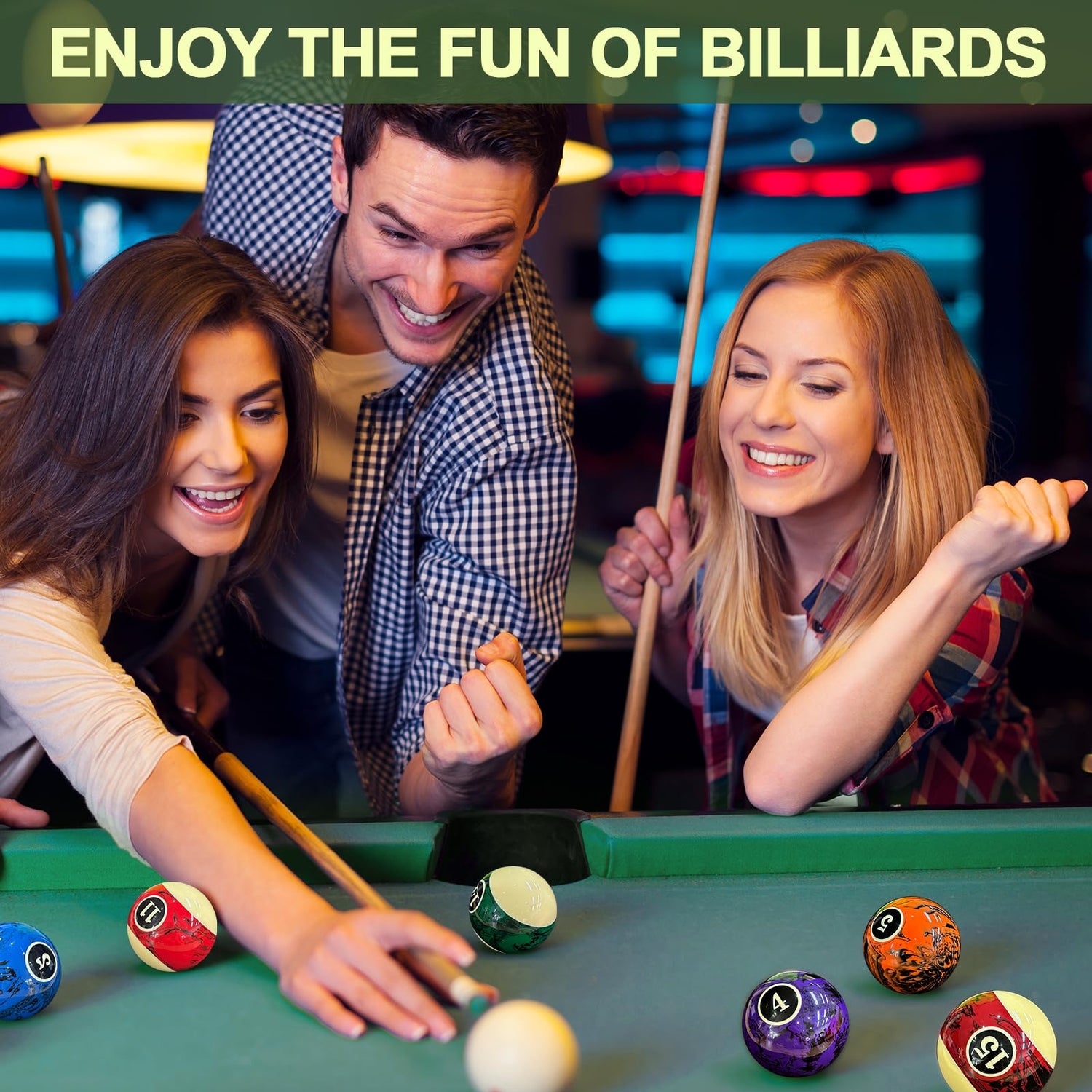 - BILLIARD BALLS:Pool balls new marble pattern regulation pool balls billiard set has a more colorful appearance the surface of the billiard ball has a hardened fade billiard ball set resistant gloss coating with excellent impact and scratch resistance