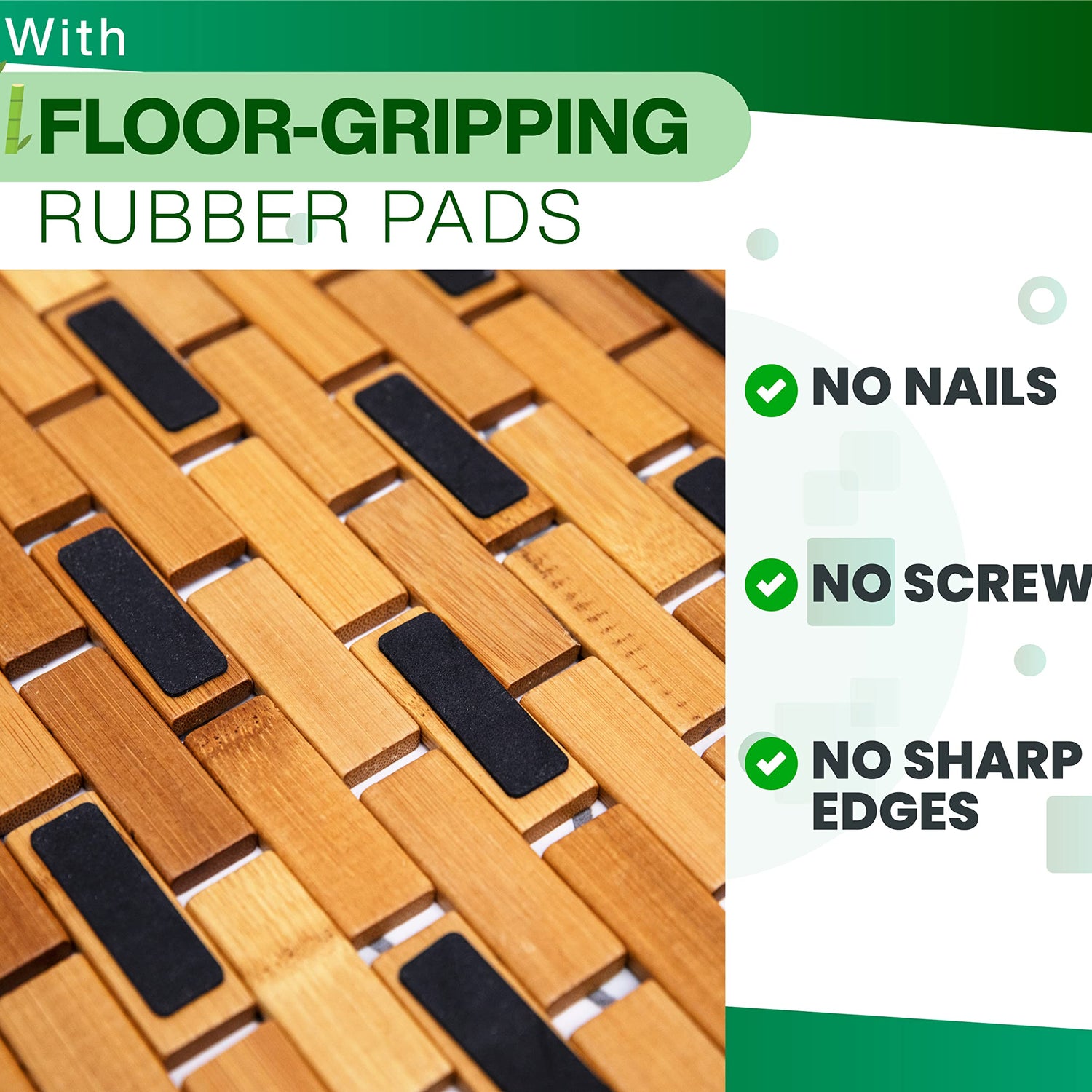 - No nail or screw used - Unlike other wood bath rugs that use nails and screws and will rust overtime and can be dangerous, this wood mat uses no metal