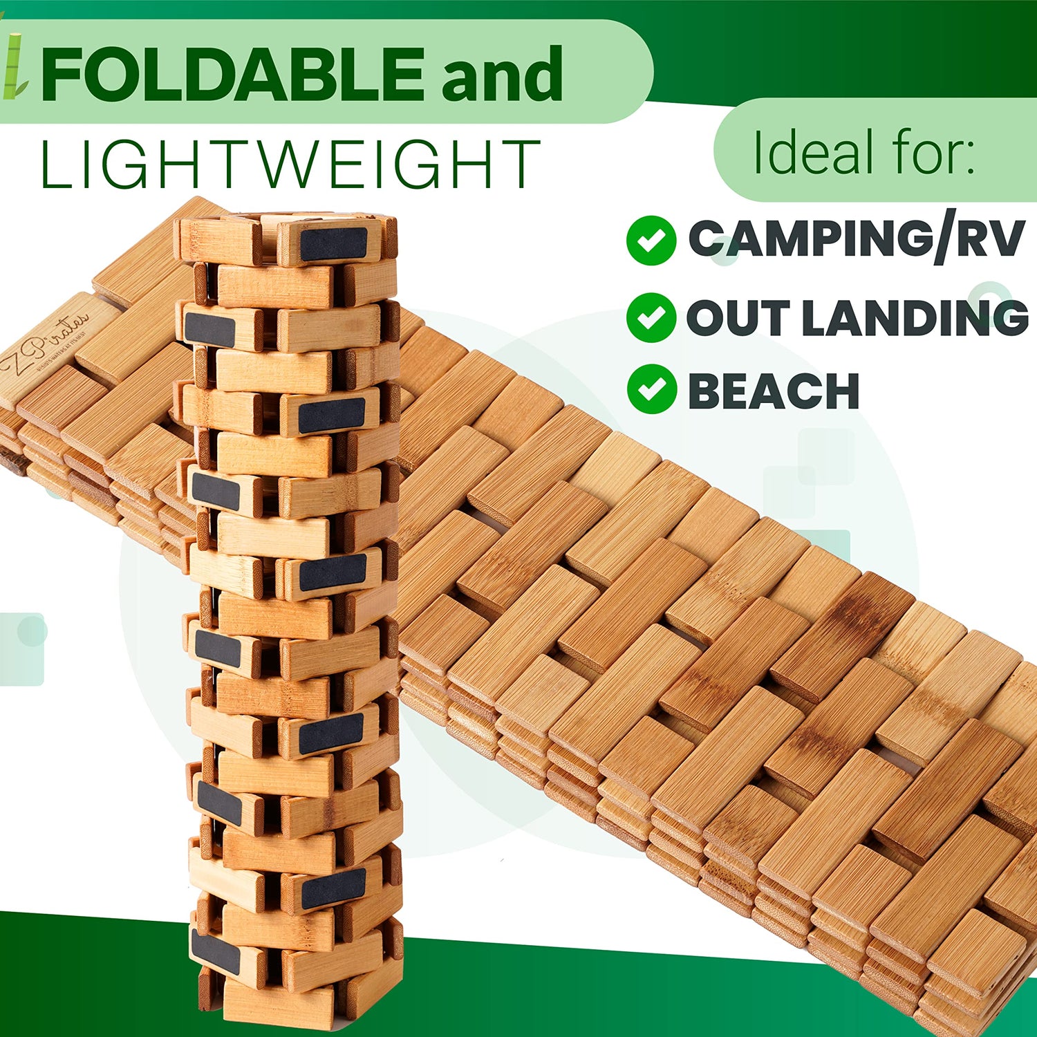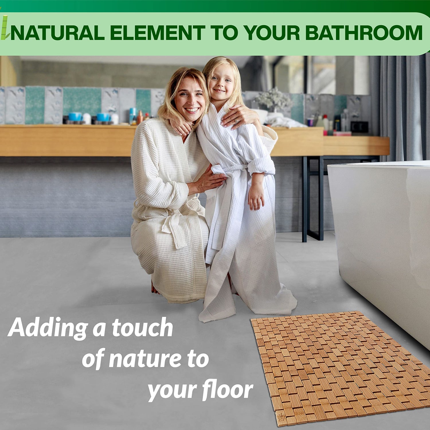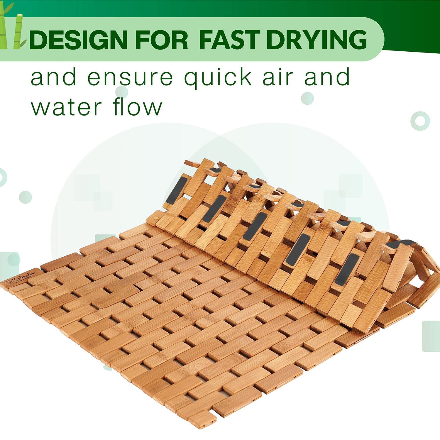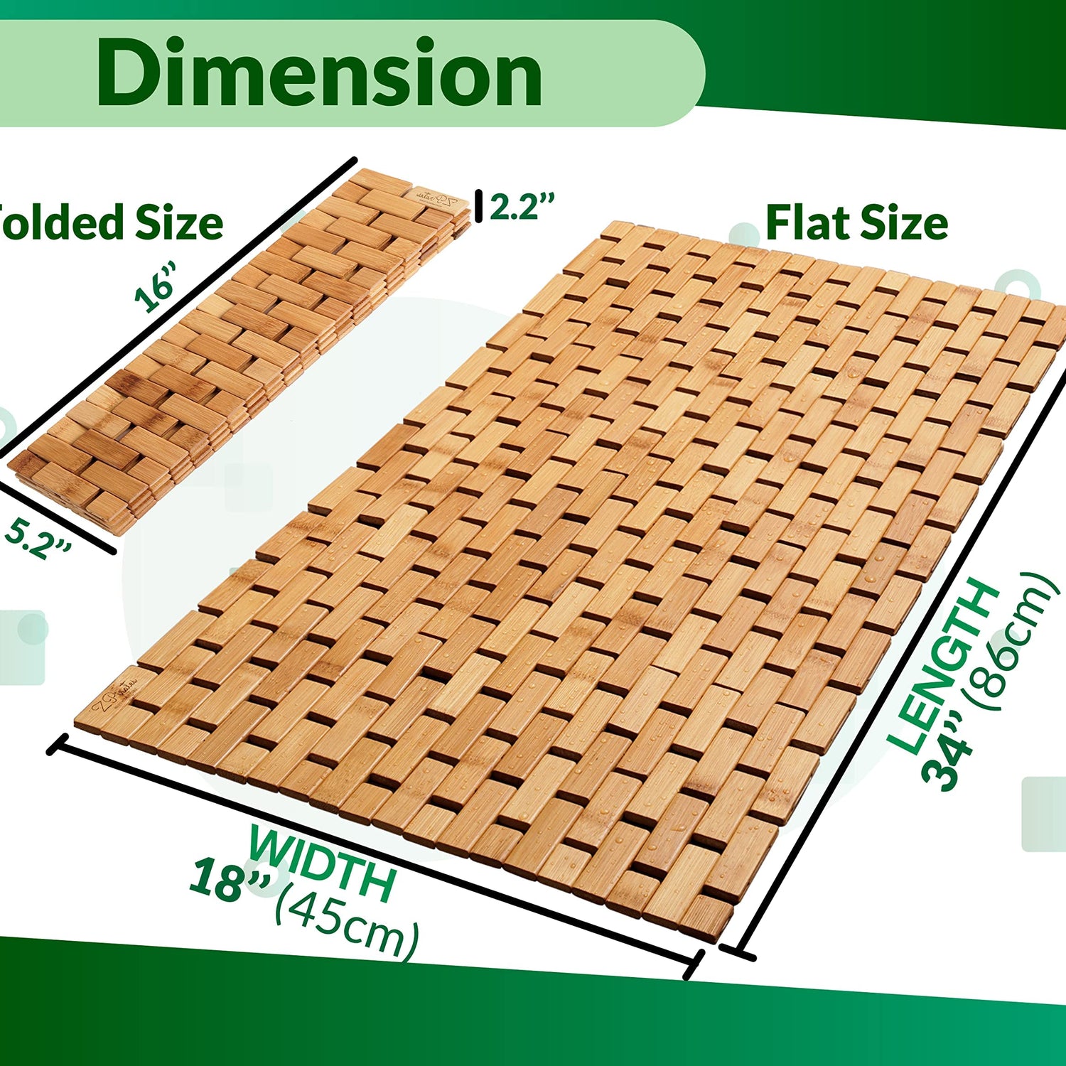 ZPirates Natural Bamboo Wood Bath Mat - Large, 34 x 18 Inches (L x W) Foldable Bathmat, Accessories for Bathroom Sauna Spa Tub and Outdoor