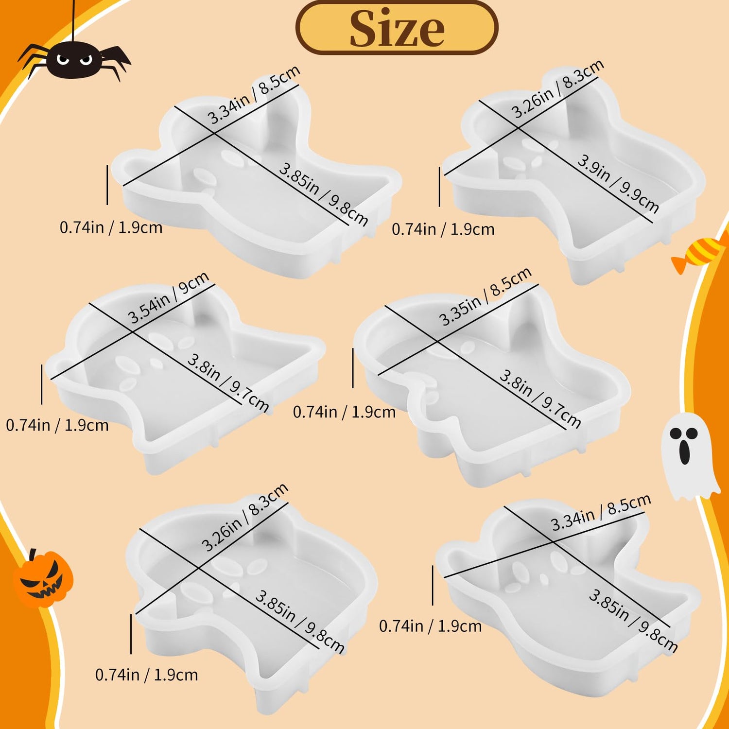 - 6-PIECE GHOST SILICONE MOLD SET: This adorable halloween set includes 6 different styles ghost silicone candle molds; 0.74-inch depth gives you the freedom to control the thickness, perfect for creating halloween candle molds for candle making, spooky soaps, clay crafts, plaster decorations, and halloween resin molds silicone projects