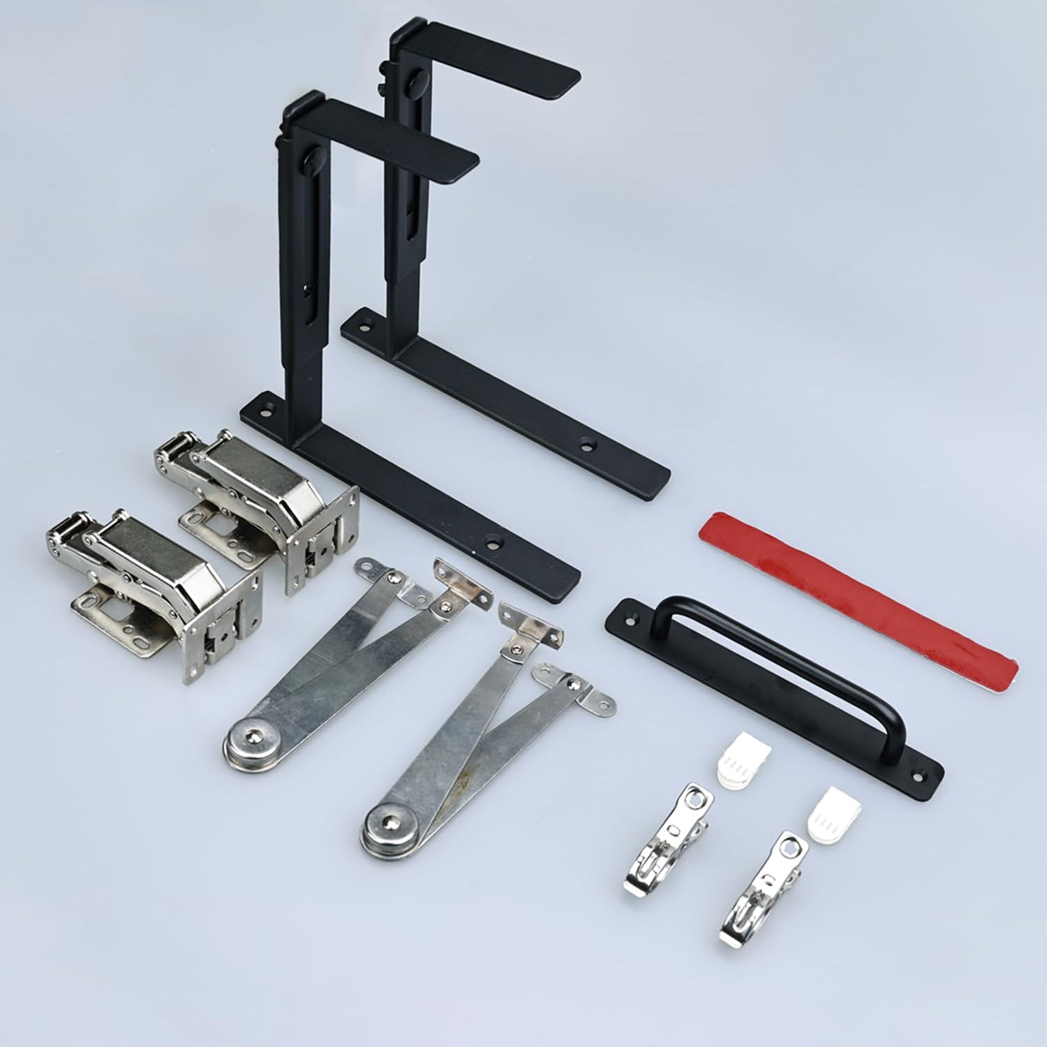 - Cabinet Conversion Kit - Trash can cabinet DIY kit for single cabinet, includes 2* heavy duty brackets, 2* support rods, 2* heavy duty hinges, 1* pull rod, 2* trash can clips. Perfect addition to your room.