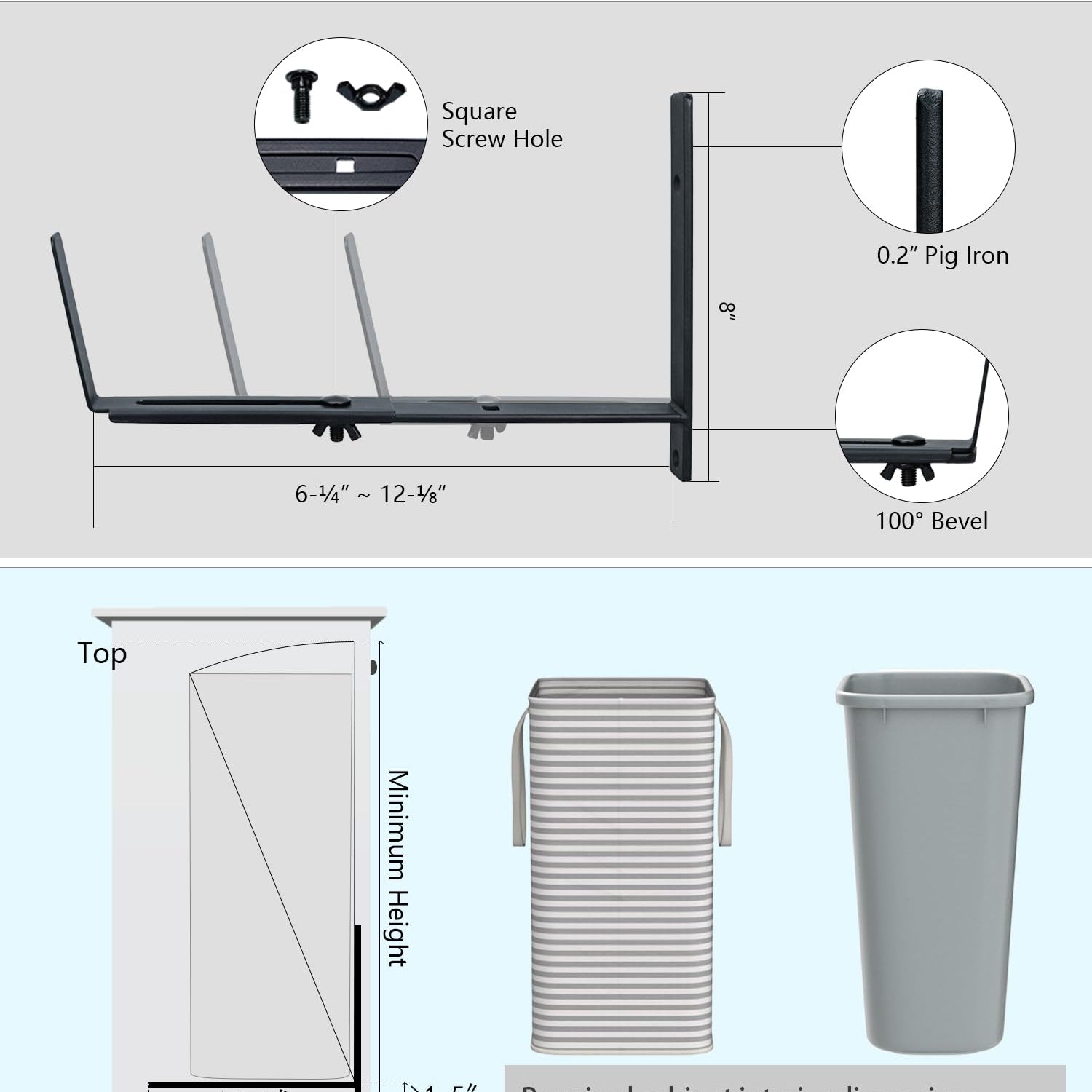 - For All Sizes - If the trash can/laundry hamper can fit into the cabinet with 1.5 inches of clearance, it can be supported.Adjustable heavy-duty brackets support containers from 6 inches to 12 inches wide with a maximum weight capacity of 50 lbs.