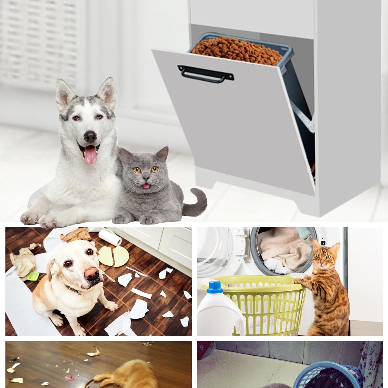 - Dog Proof Cabine DIY Kit - Tilt out trash cabinet not only hide dirty clothes and trash and mask unpleasant odors, but they can also be used to store dog food, effectively preventing your dog from opening the cabinets and improving your space with this functional modification.