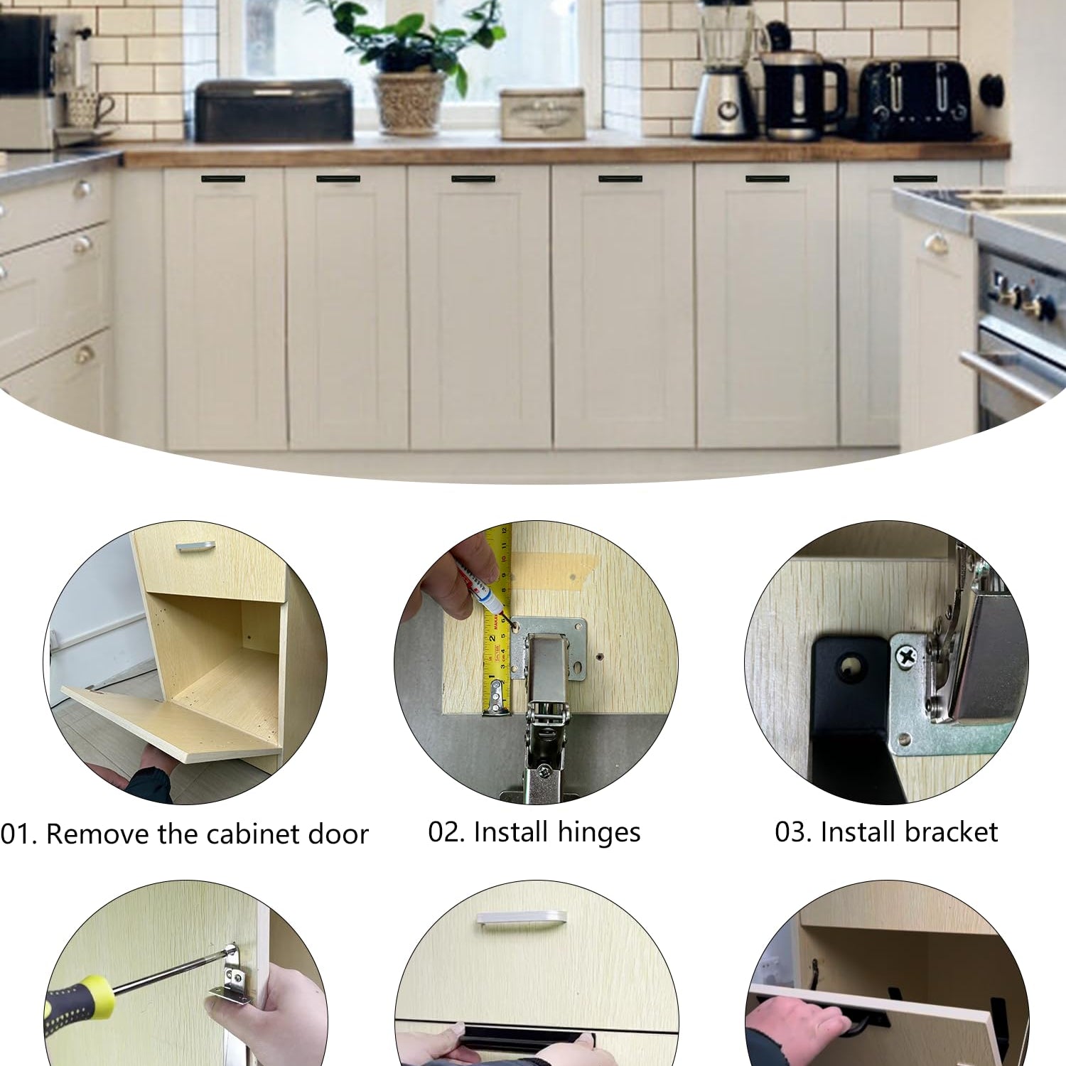 - Wide Range of Usage - Any cabinet with any door opening can be used, the large 170° angle opening allows you to install it easily, the included support bar allows you to self-set the angle of pulling the cabinet open. Ideal for single door cabinets in kitchens, bathrooms, living rooms and dining rooms.