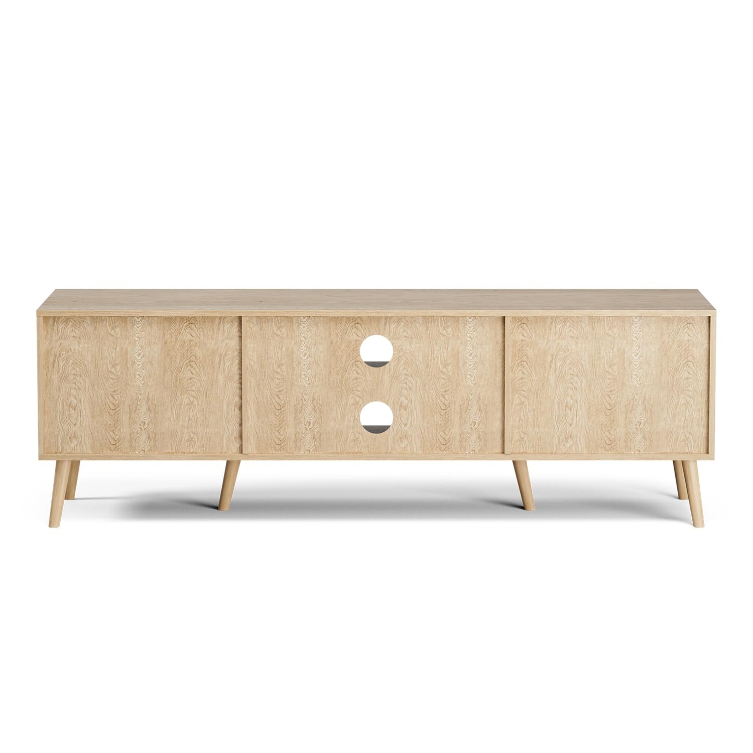 - CONVENIENT STORAGE: Middle shelf and 2 large cabinets storage your favorites. And more, 2 cord holes behind arrange your wires well. Display or Hide? This mid-century tv stand is good at that