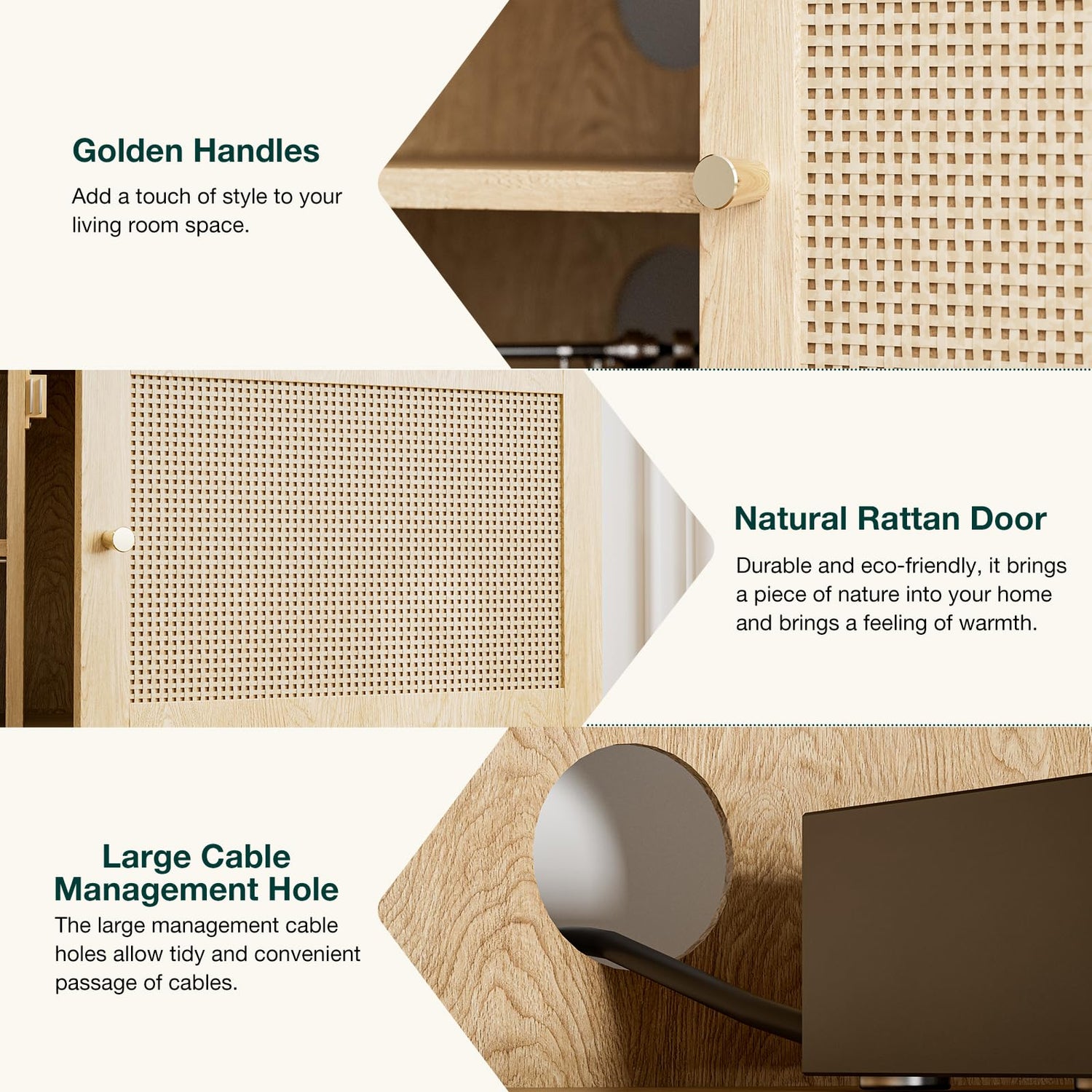 - TV COMPANION: Rattan-decorated doors match the natural surface, this TV stand with storage blends modern and boho style. If your living room is calling for a new upgrade with storage, this TV stand is a great addition