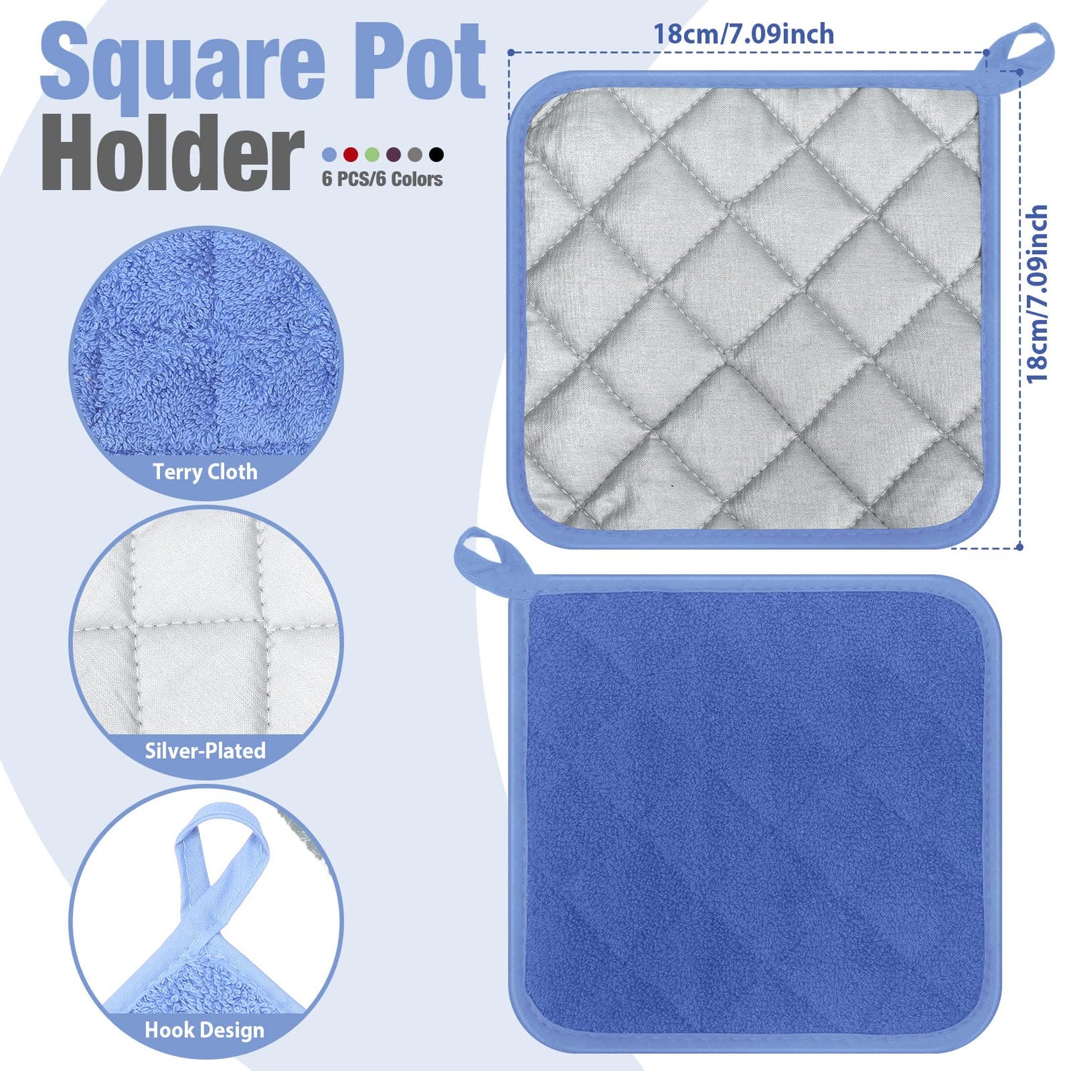 - Valuable and Colorful Set: there are 6 pairs of kitchen mittens, respectively black, green, gray, red, yellow, purple, and 6 pcs hot pads for kitchen, namely black, green, gray, red, blue, purple, the valuable and colorful set can meet your various use and replacement demands in daily life, and is enough to share with your family and friends
