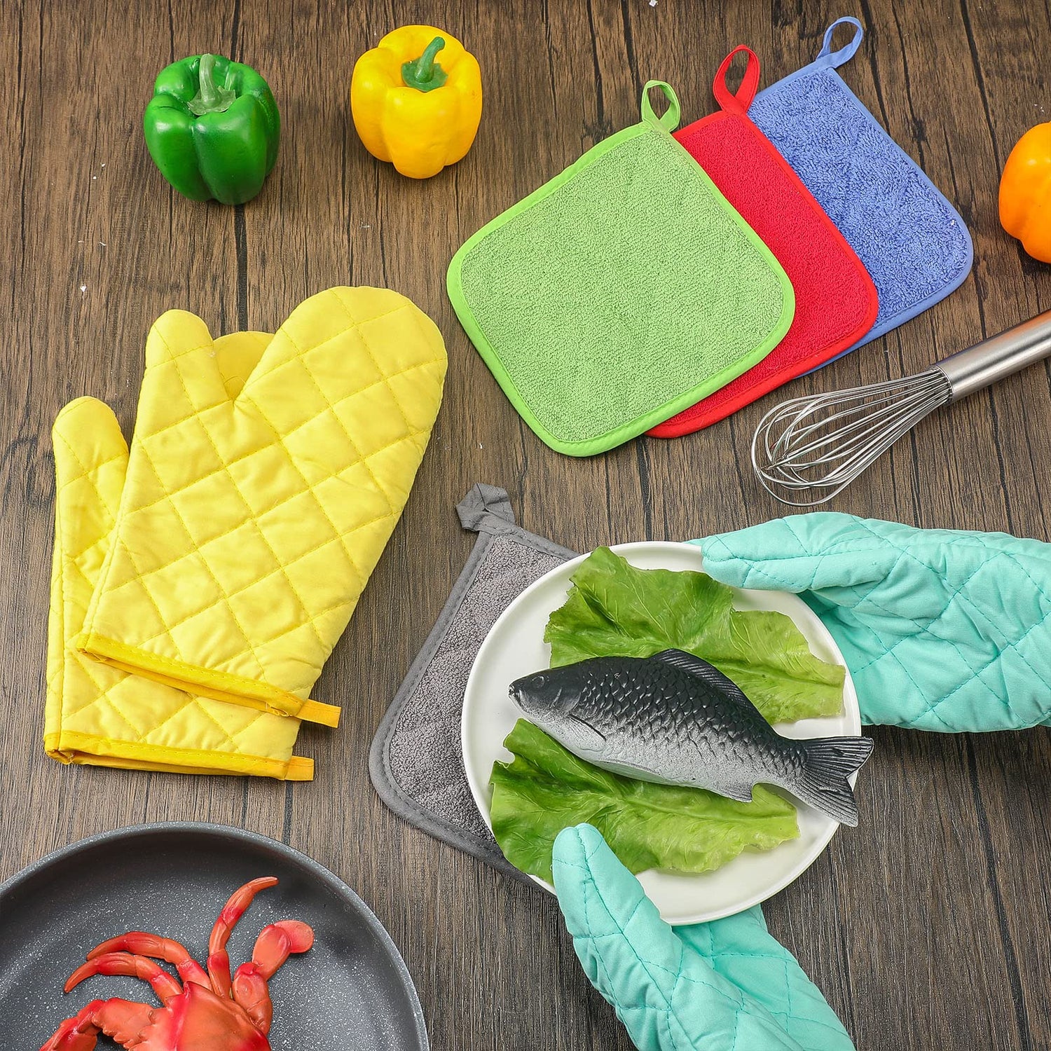 Zubebe 12 Pcs Oven Mitts and Pot Holders Multicolor Sets 6 Pair Blank Sublimation Heat Resistant Cotton Oven Gloves Kitchen Gloves 6 Terry Cloth Pot Holders Oven Hot Pads for Cooking Baking Grilling
