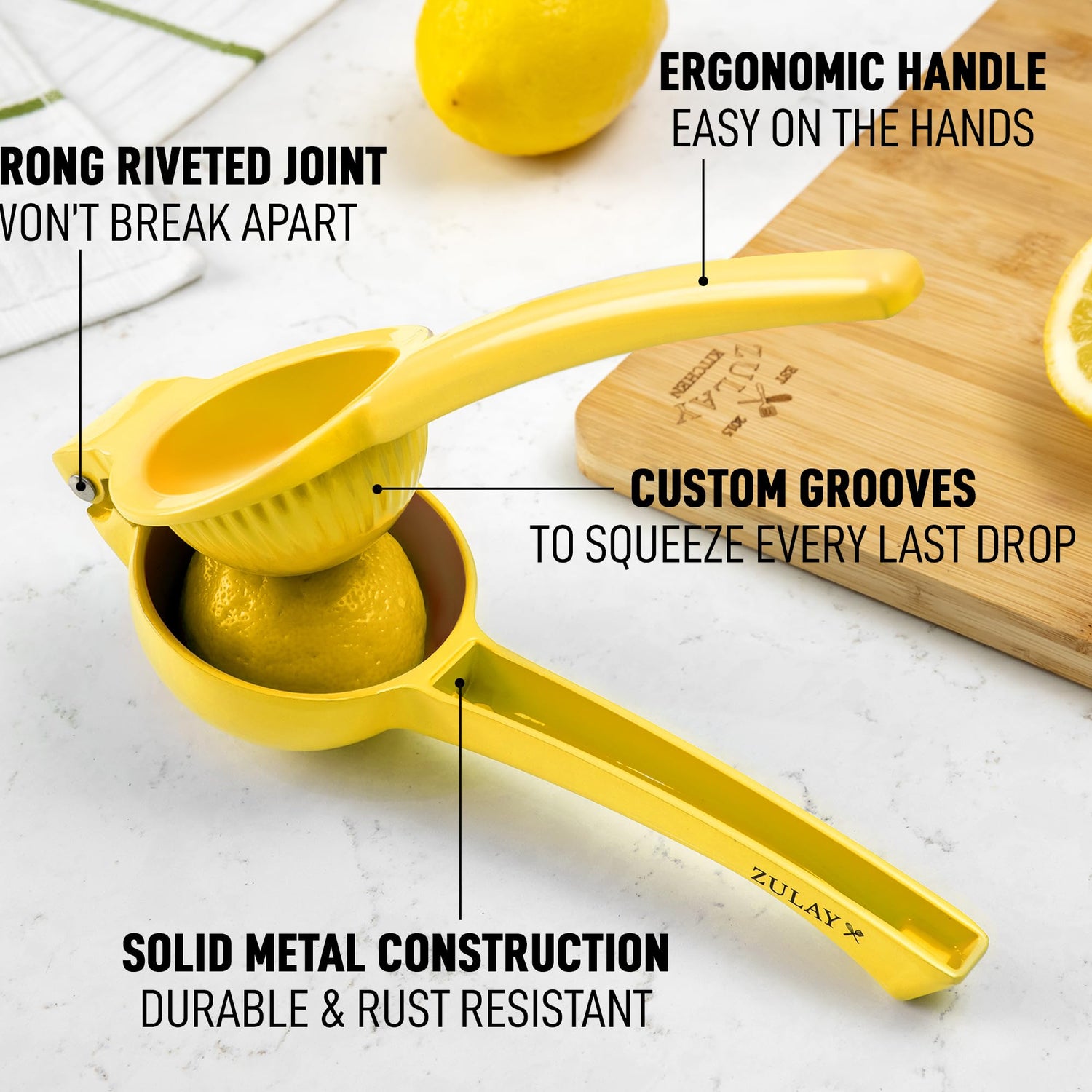 Zulay Kitchen Metal Lemon Squeezer - Handheld Lemon Juicer Squeezer - Easy to Use Citrus Juicer - Manual Press for Extracting the Most Juice Possible - Extracts Every Last Drop