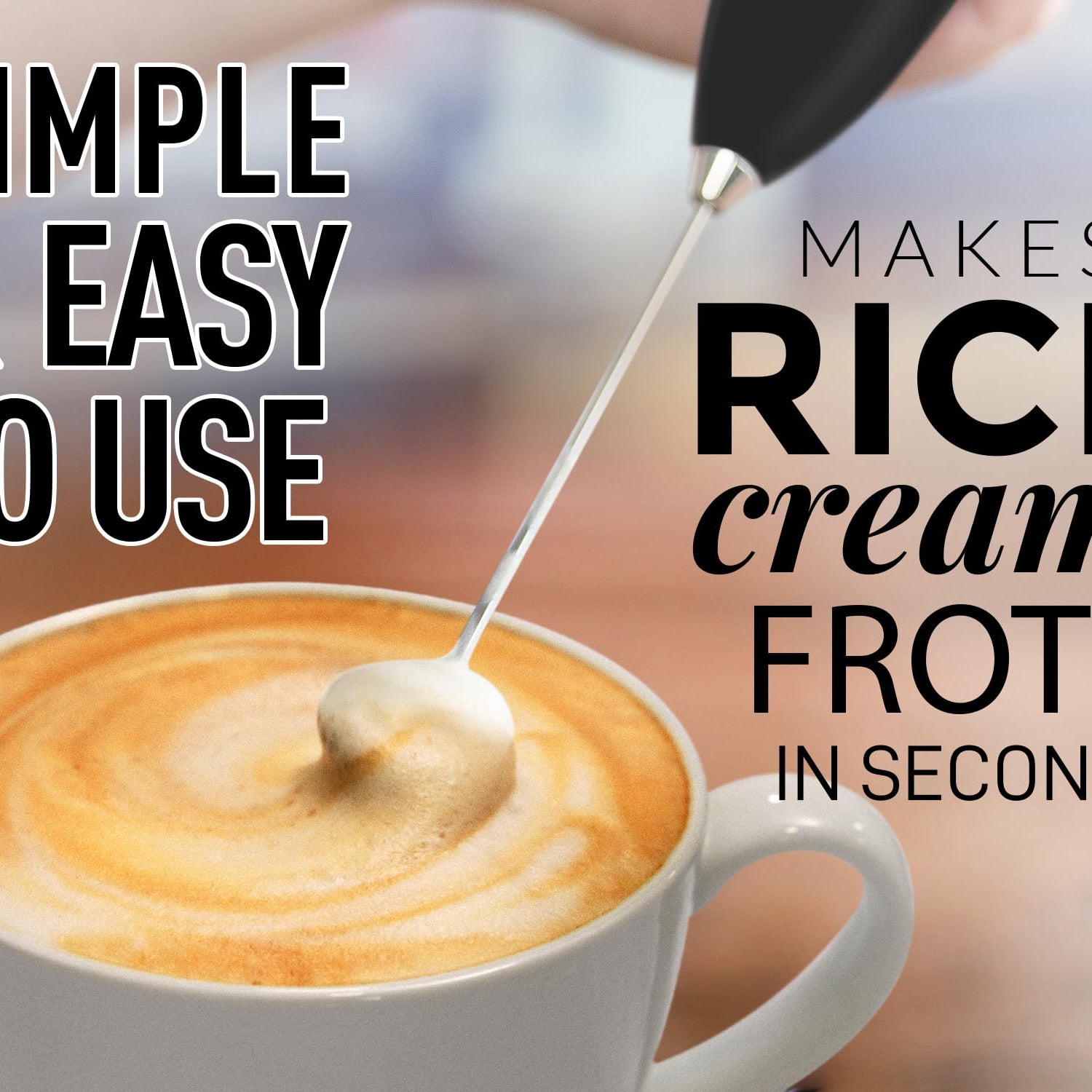 - CREAMY VELVETY FROTH IN SECONDS: Making coffee-shop-style recipes at home is as simple as it can be with this milk frother. The 13,000 RPM motor and 25 spiral rings on the whisk let you whip up rich foam in no time. Level up your everyday warm or cold coffee, latte, cappuccino, hot chocolate, matcha, or powdered drinks with this coffee foam.