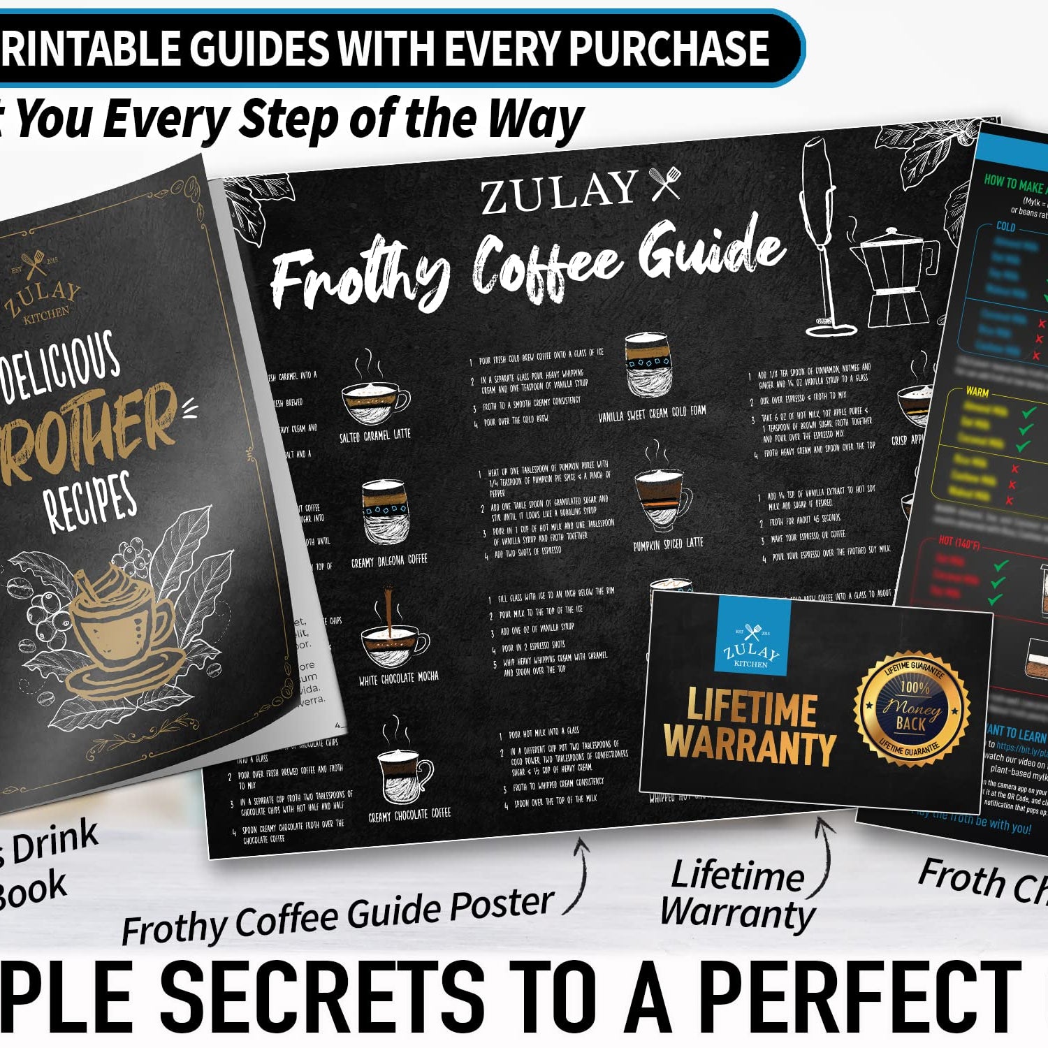 Zulay Kitchen Milk Frother Wand Drink Mixer with AA Duracell Batteries- Durable Handheld Milk Frother Electric Whisk - Easy-Clean Milk Frother Wand & Mini Blender - Electric Coffee Frother - Black
