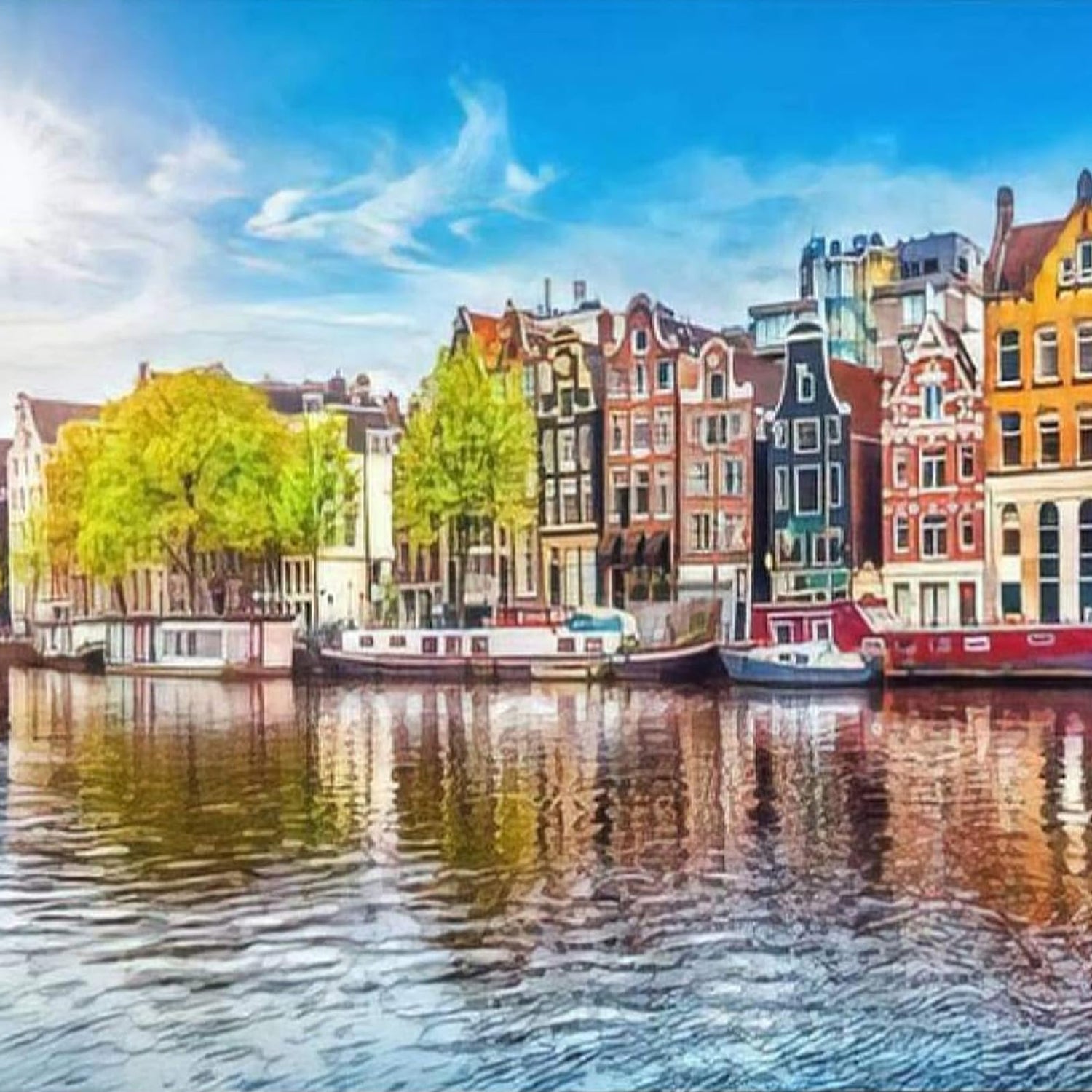 ZUVRDIAI Paint by Number Kits for Adult Beginner, Amsterdam Netherlands Dancing Houses Over River Amstel Landmark in Old DIY Digital Oil Painting Kit Canvas Kit Art Wall Decor 16x20Inch