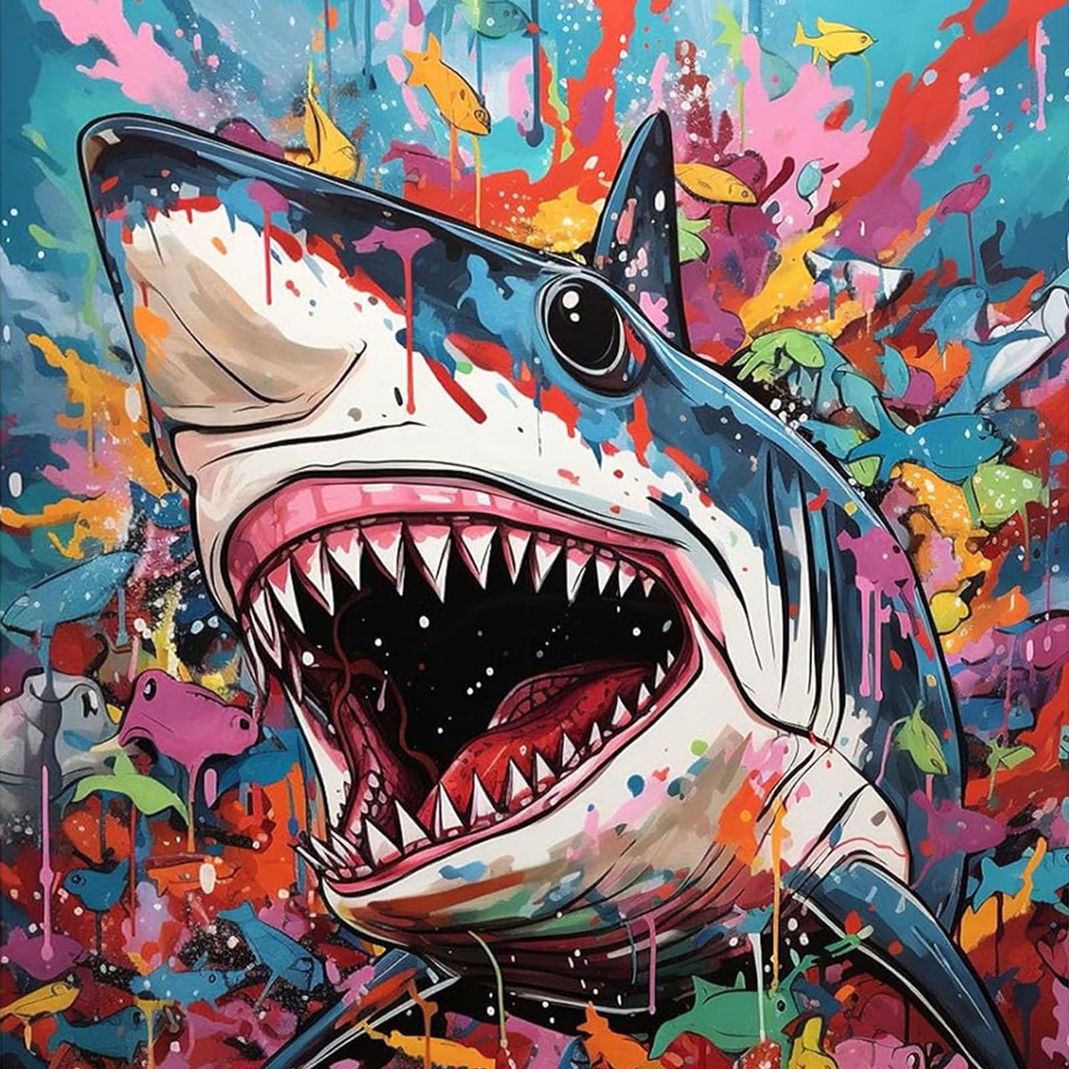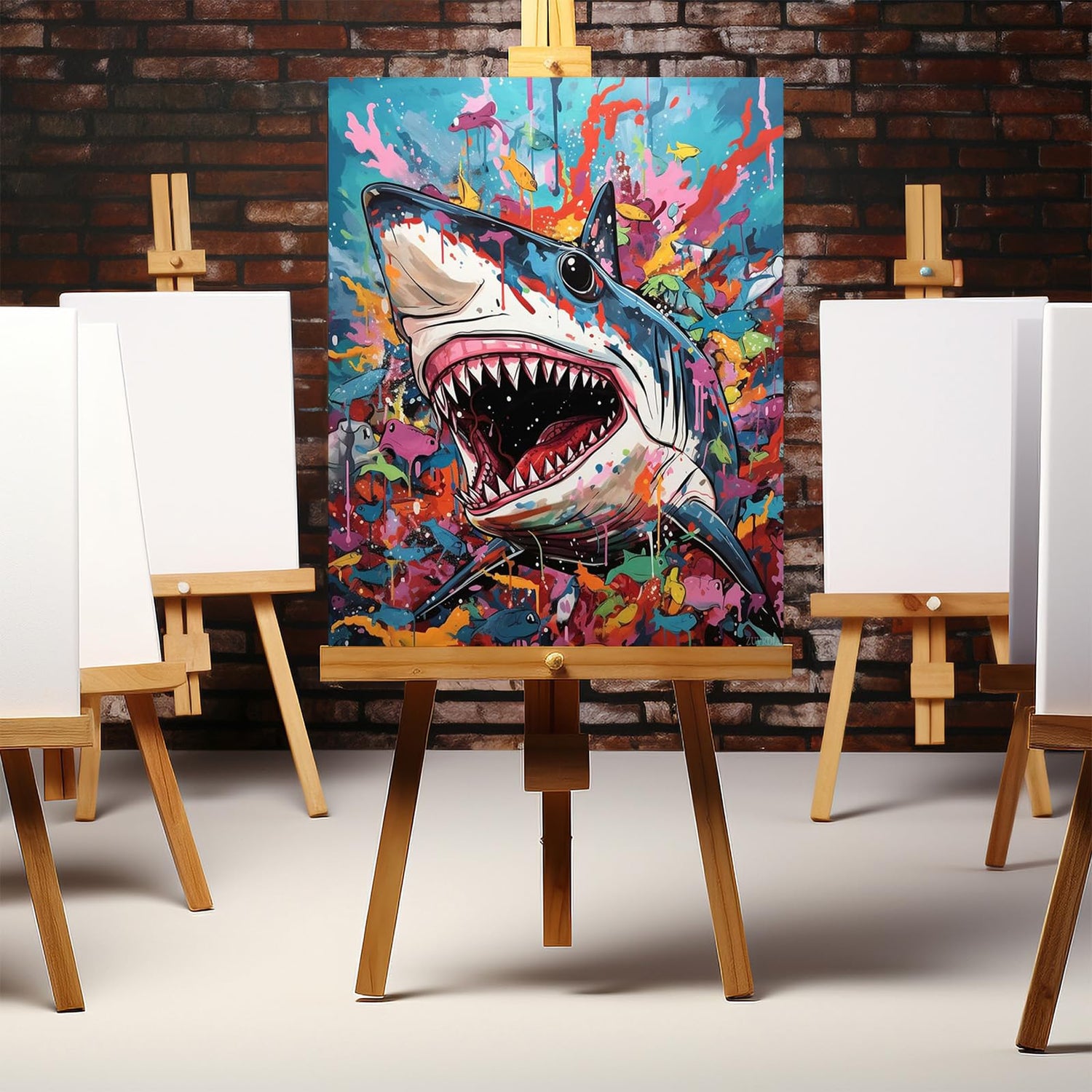 ZUVRDIAI Shark Paint by Number for Adults, Underwater World DIY Digital Oil Painting Kits on Canvas with Brushes and Acrylic Paints, Hand-Painted Style for Home Decor 16x20 Inch(Frameless)