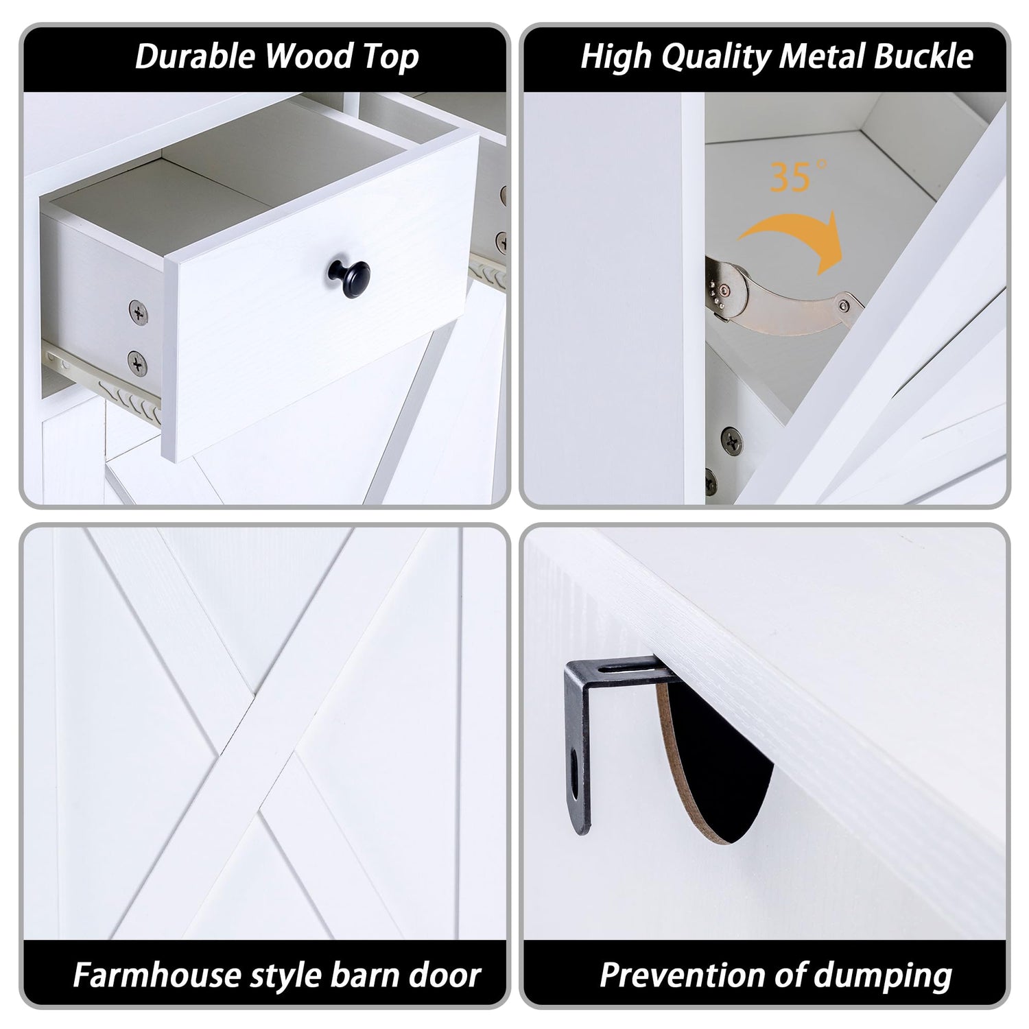 - 【High quality wood material】: The wooden trash can cabinet features a vintage barn door design with rust-proof hinges and iron handles. The solid wood structure guarantees its stability.