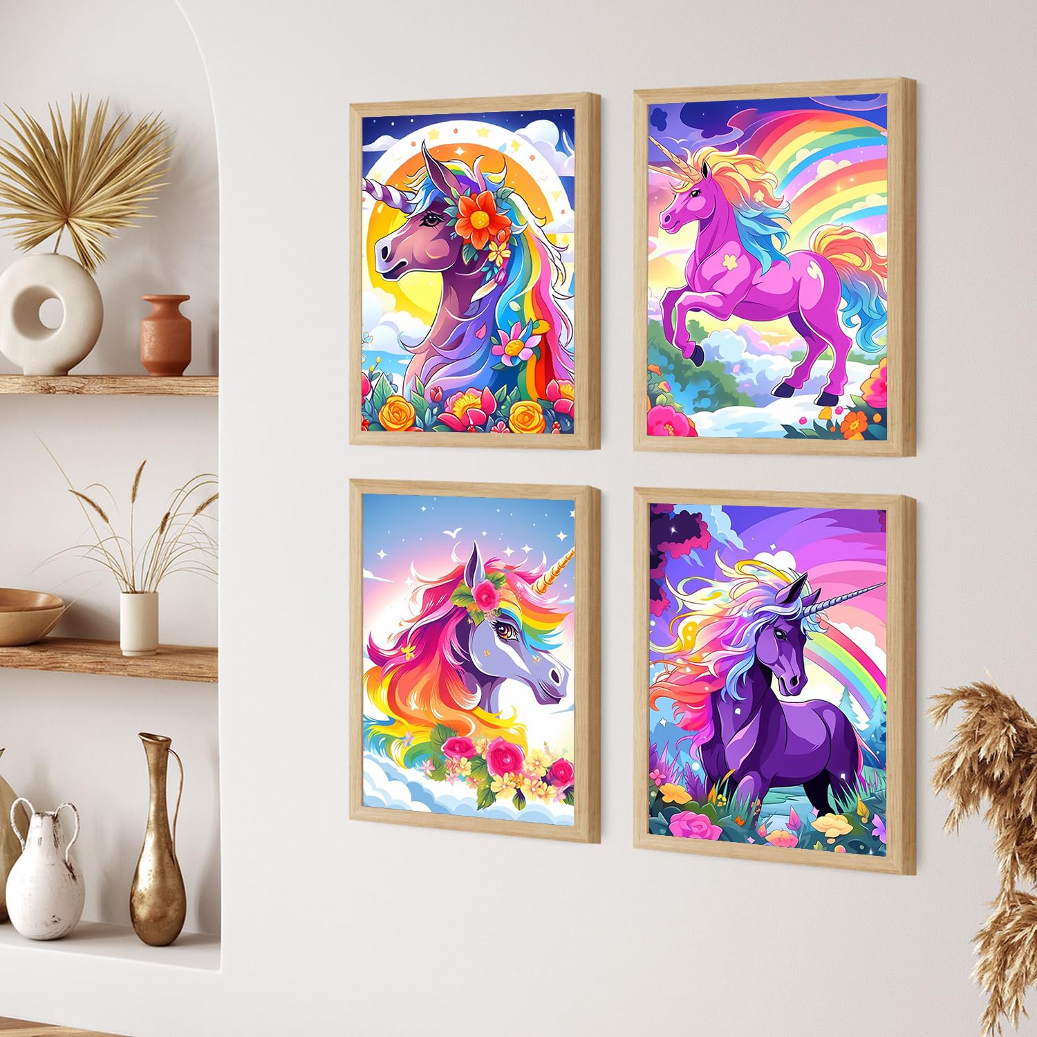 ZXQL 4 Pack Unicorn Paint by Numbers Kit for Adults Beginners, 12" Wx16 L Paint by Numbers for Adults Rolled up Canvas for Painting Home Decor Creative Wall Art with Nice Gift Box