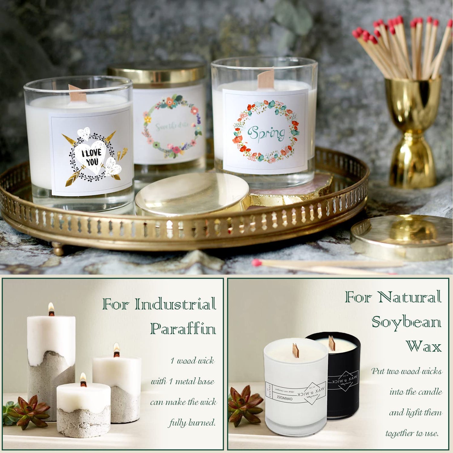 - WIDE APPLICATION: Our wood wicks for candle making are suitable for candles made from a variety of materials including paraffin, soy wax, beeswax, coconut wax, carnauba wax and gel wax. Come and DIY your home candles, perfect for gifts and home use