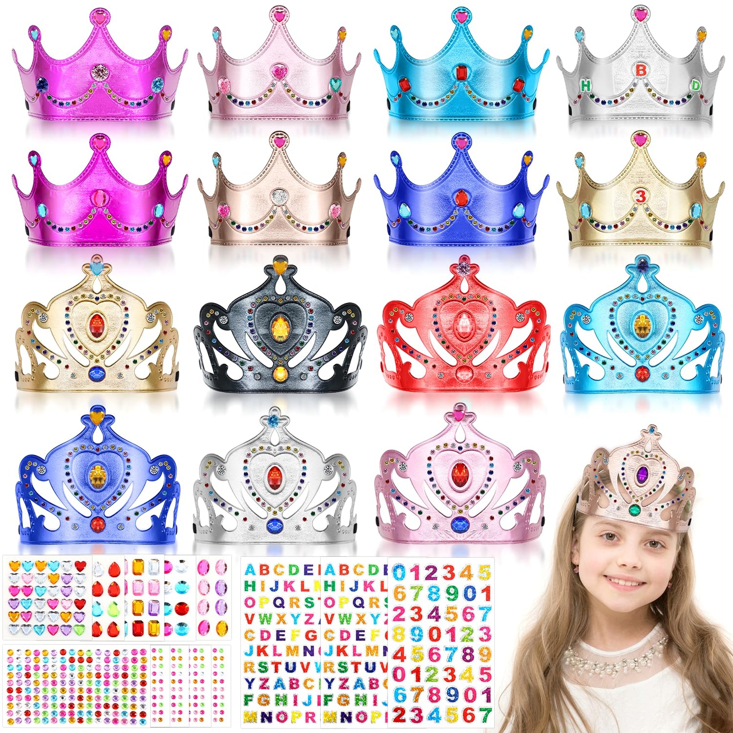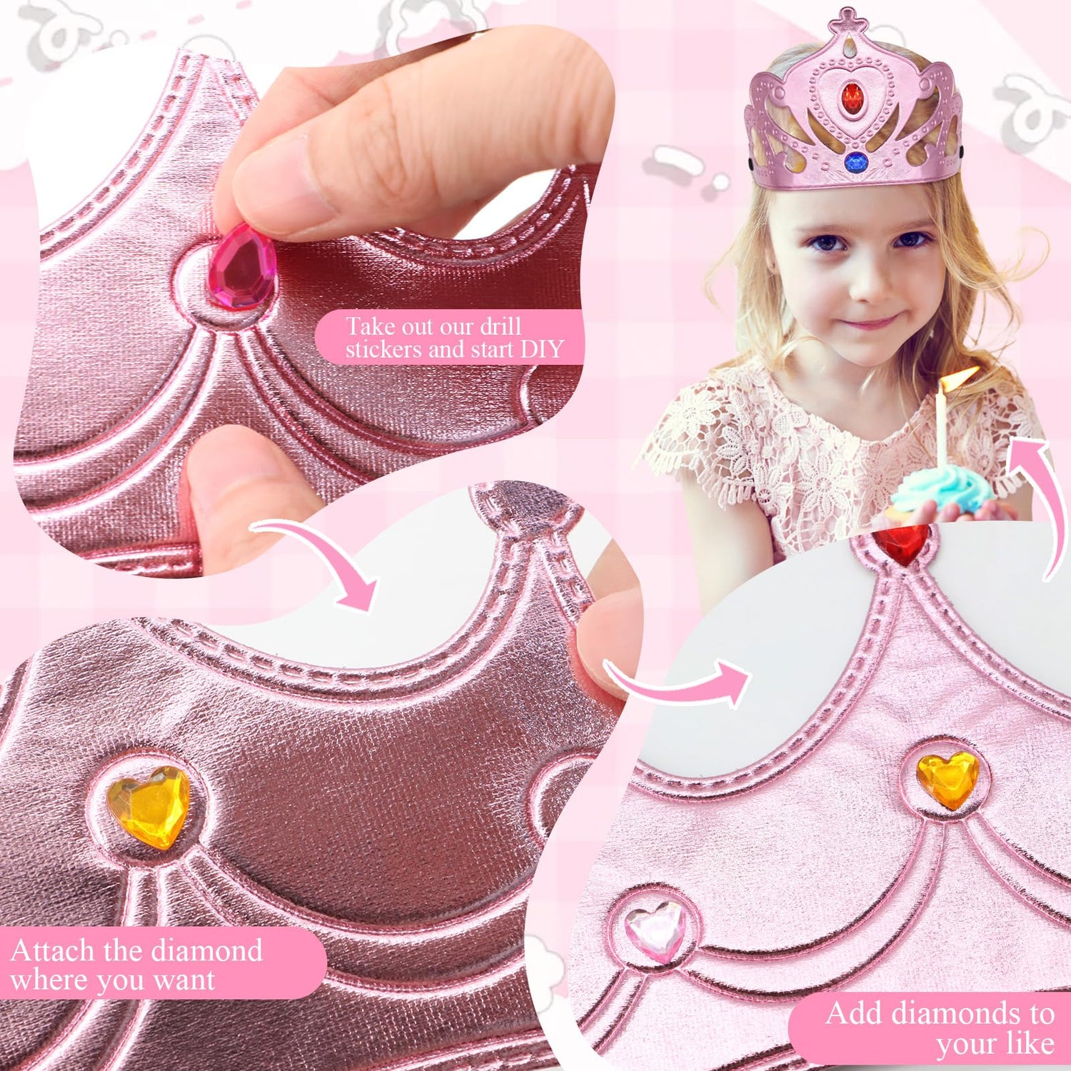 ZYNERY 29 Pcs Birthday Crowns for Kids Fabric Crafts with Stickers Bulk 4-14mm Rhinestones,Princess Tiaras DIY Crown Gifts for Girls Boys Role Rlay