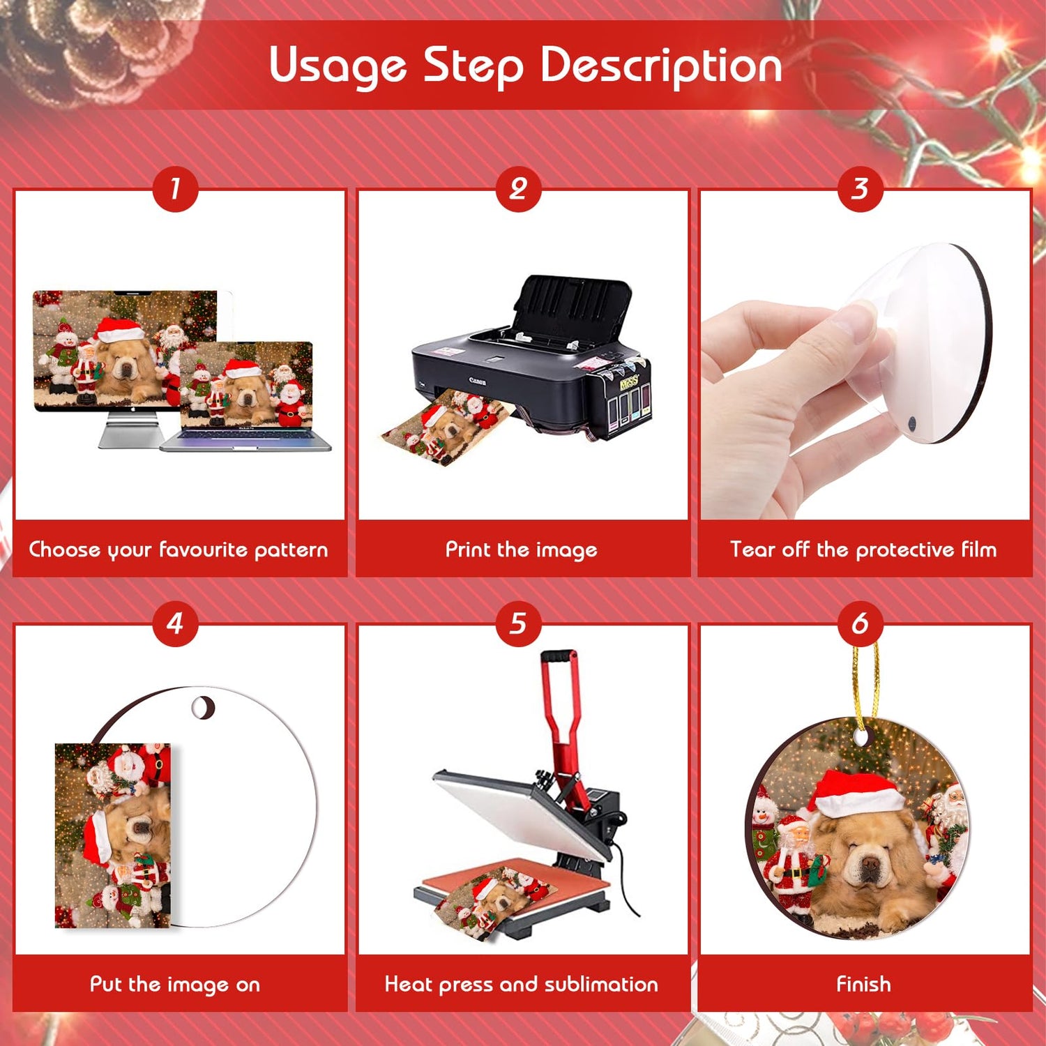 - INSTRUCTIONS FOR USE: Acrylic sublimation blanks have a protective film on both sides to prevent the mdf ornament blanks from being scratched or soiled, please remove the film before use. Sublimation temperature: 356-374 °F / 180-190 °C. Sublimation time: 40-60 seconds. Pressure value: medium