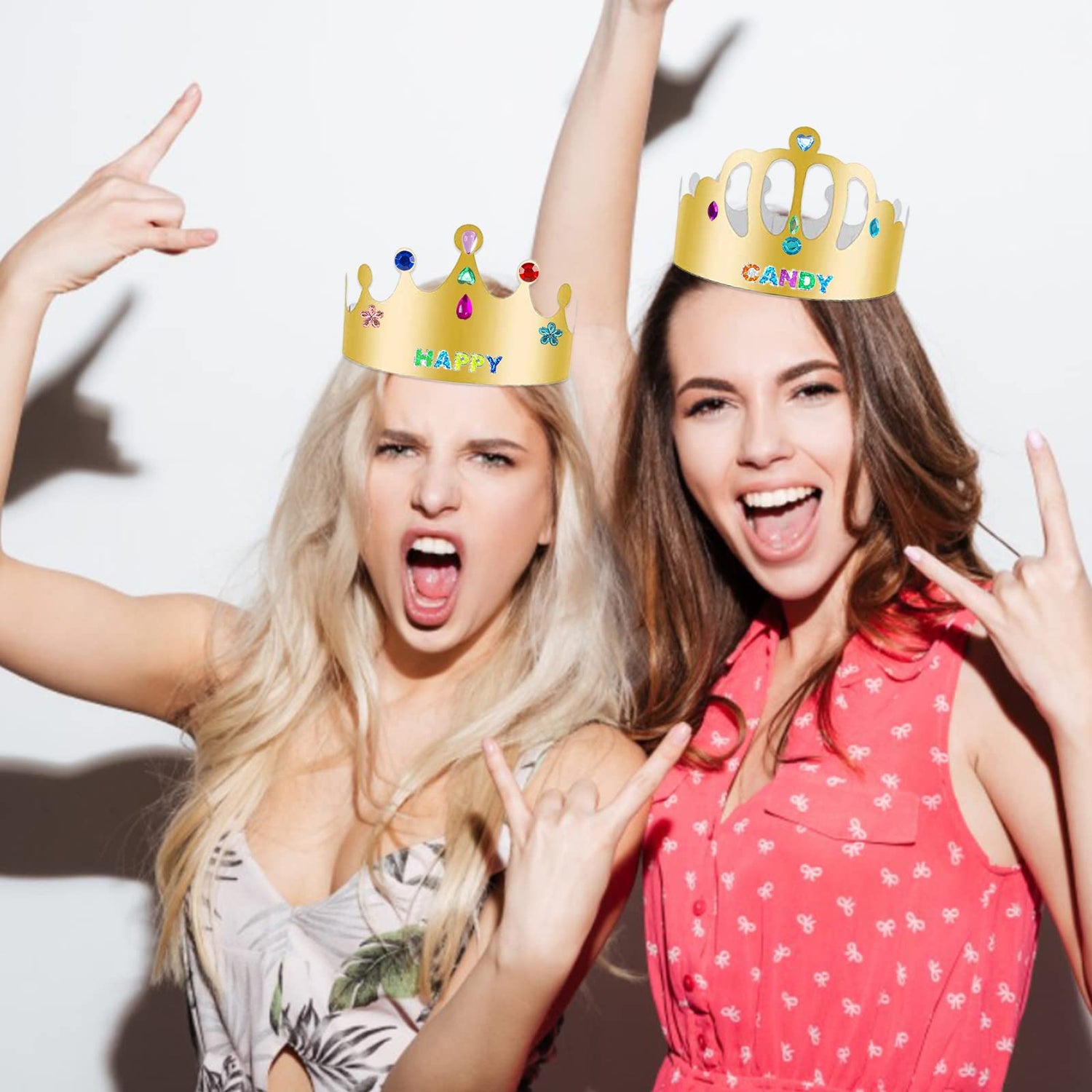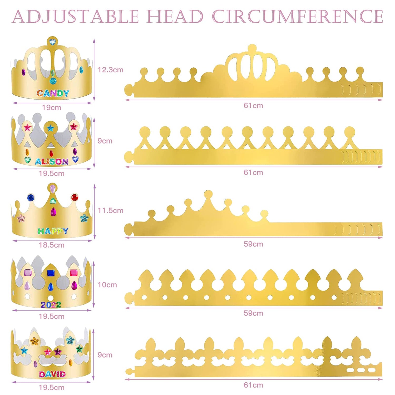 - ๐ 25 PCS Golden Paper Crowns๐: Golden Paper Crowns are made of premium golden foil paper, durable and eye-catching. 25 pieces of golden paper crowns come in 5 different styles, 5 pieces per style. The quantity is enough for you to DIY the crown as you like.
