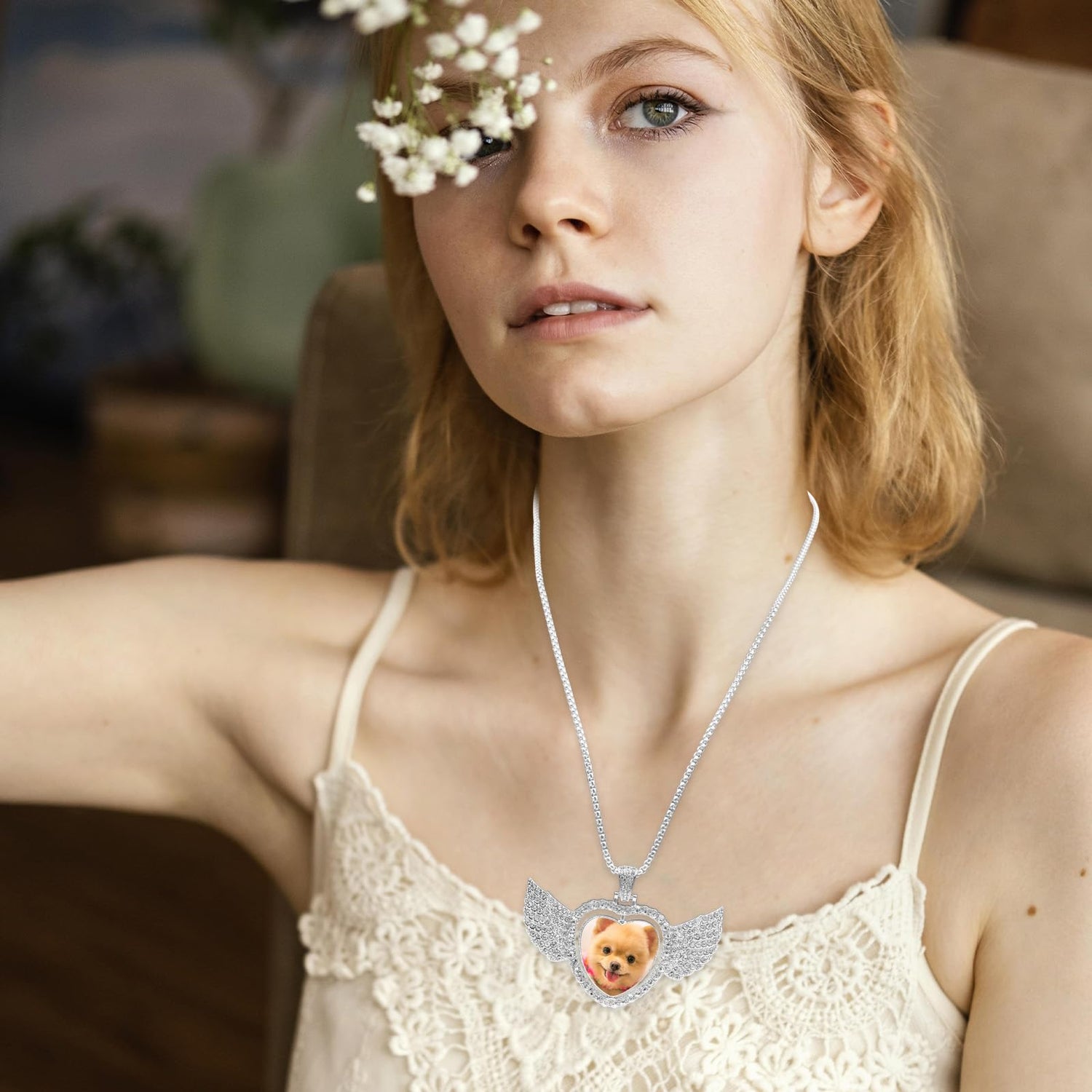 ZYNERY 48 Pcs Sublimation Rhinestone Trays Pendant Set, Sublimation Necklace Blank with Chain, Includes 8 Double Sided Blank Rhinestone Bezel Trays, 8 Chains, 16 Sublimation Discs, 16 Tapes (Wings)