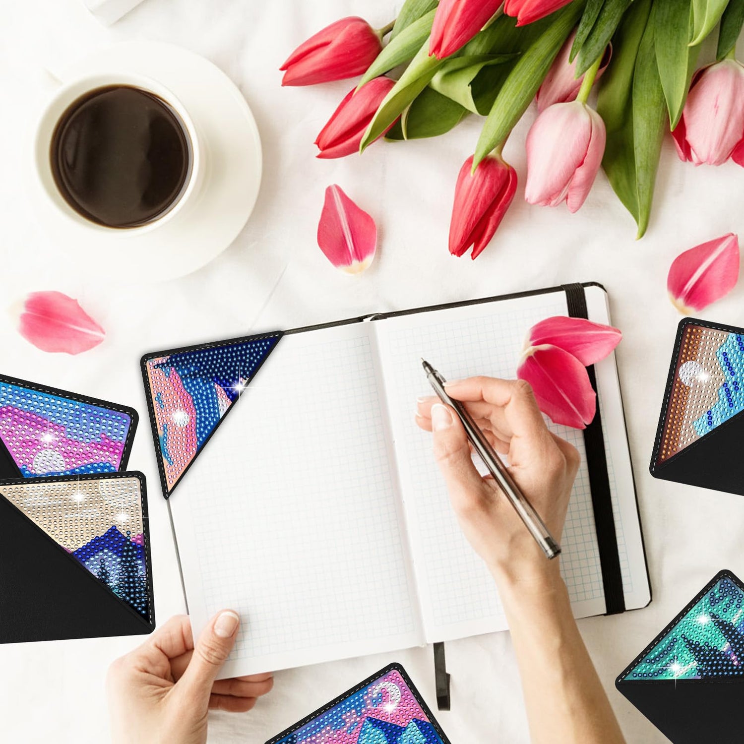 - RICH DIAMOND ART KIT: You will get 8 pieces of corner bookmarks, ample amount of diamond bags, 1 diamond painting pen, a tray, a clay. The complete diamond painting tool accessories are enough to accomplish a fun diamond art