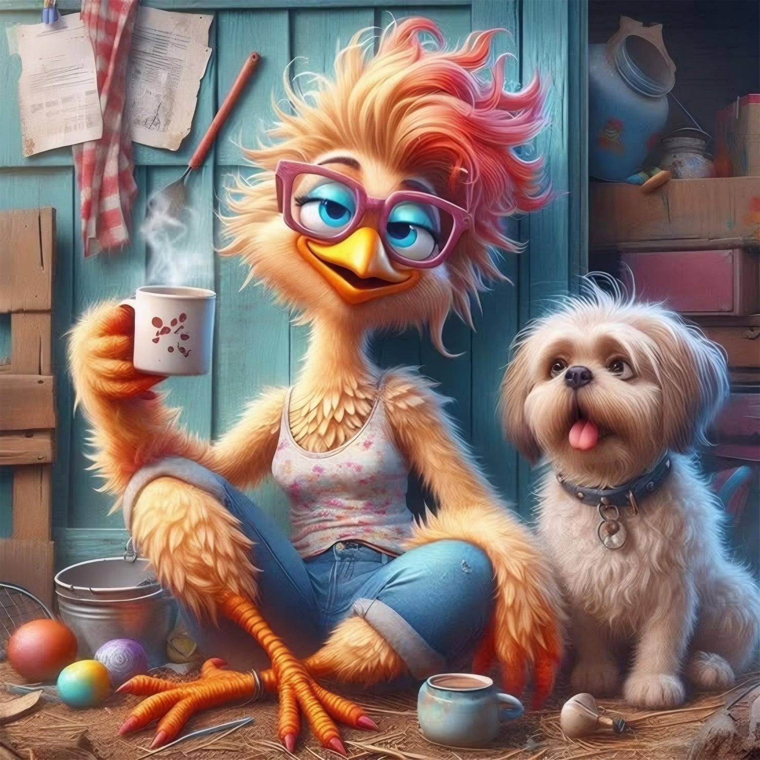 Zythron Chicken Diamond Art Kits for Adults,Chicken and Dog Diamond Painting, 5D Full Drill Diamond Art Gem Art Kit for Adults Wall Home Decor Arts Craft 14x14 inch