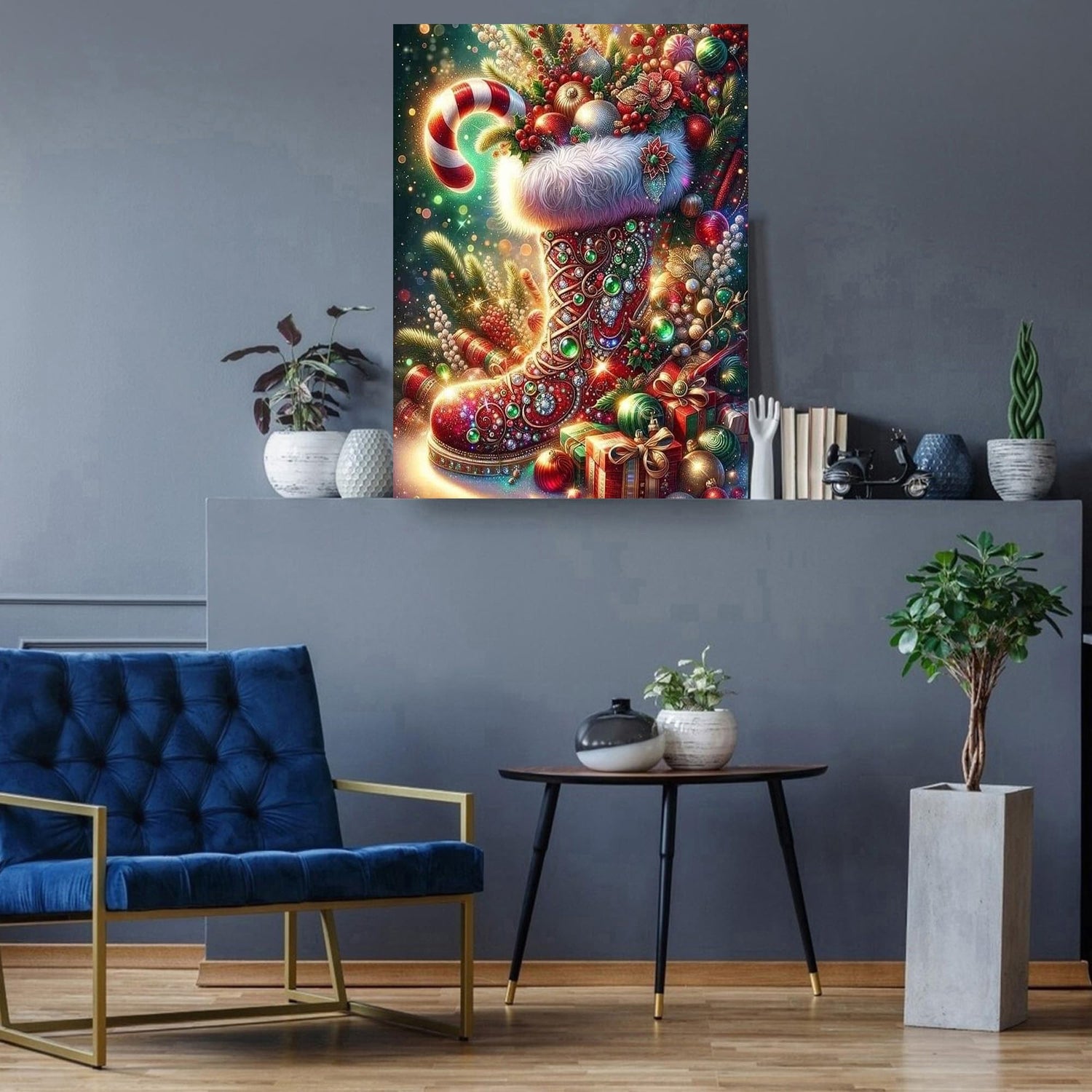 Zythron Christmas Diamond Art Kits for Adults,Winter Christmas Boots Candy Diamond Painting Kits for Beginners 5D Diamond Art,DIY Full Drill Round Gem Art Paintings for Home Wall Decor 12"x 16"